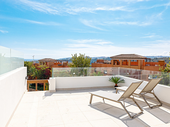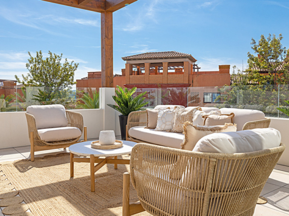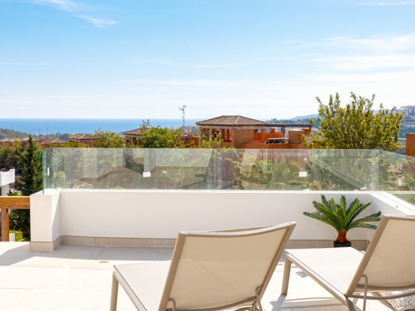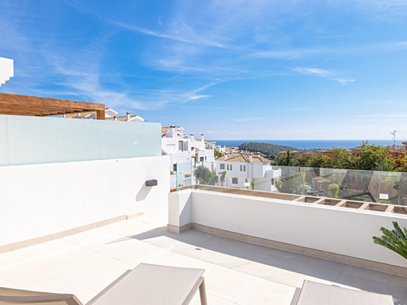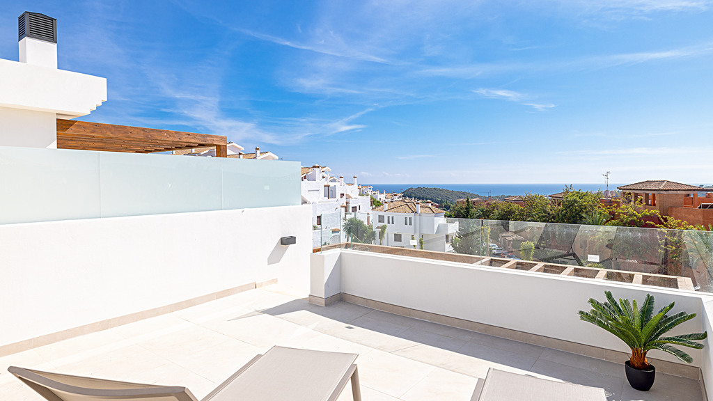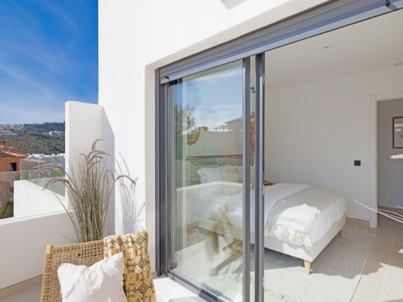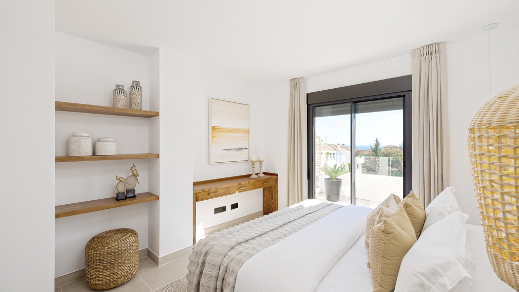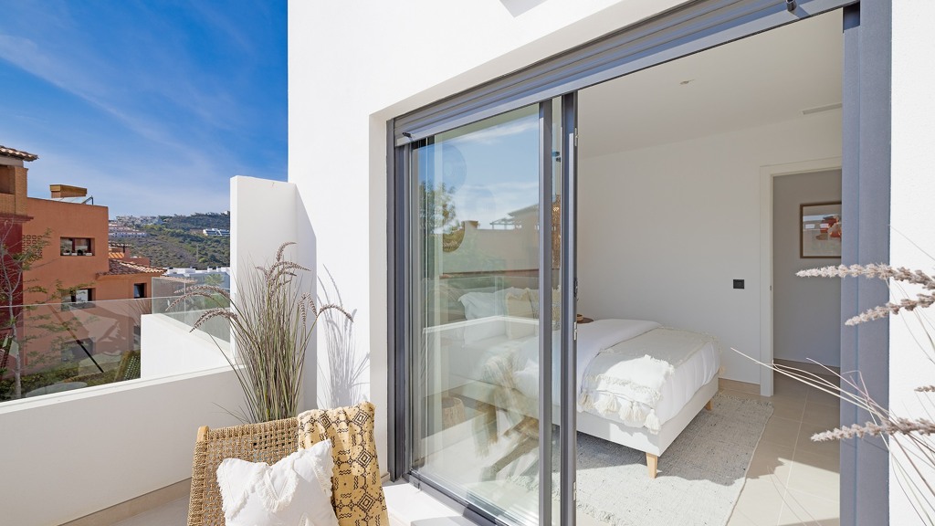 Apartment in a new urbanization composed of five blocks, a total of 43 units. With landscaped green areas, a beautiful community pool; Each block has independent access to the garage and underground storage rooms. Each apartment is unique; They are all of different distributions and typologies. This exclusive apartment, located within the prestigious Casares Costa Golf urbanization, adjacent to the renowned Finca Cortesín. Within the Casares Costa Golf complex, a few meters away is the golf course, a restaurant open all year round, a gym and a golf shop. Unobstructed views that embrace both the mountains and the sparkling sea, this apartment is a haven of energy, tranquility and beauty. With two bedrooms and two large bathrooms, this apartment offers a feeling of freedom and light; a generous and comfortable space for its residents. The open kitchen is a place where functionality is perfectly combined with aesthetics. Additionally, it has a laundry area that adds an extra layer of convenience and practicality. It has solar panels on the roof and aerothermal energy. What really sets this property apart is the abundant natural light that floods every corner, creating a feeling of spaciousness and serenity. Natural touches like the large wooden pergola and the use of premium materials throughout the apartment reflect a commitment to quality and attention to detail. In addition, the large terrace offers pleasant views and a perfect outdoor space to enjoy the Mediterranean climate, sunrises or sunsets. The property’s prime location ensures that its residents are just minutes from the beach and surrounded by renowned golf courses, making it a paradise for golf lovers. In short, in this apartment, architecture and design combine the natural beauty of the environment to create a new home.