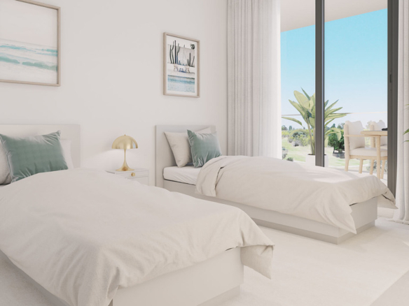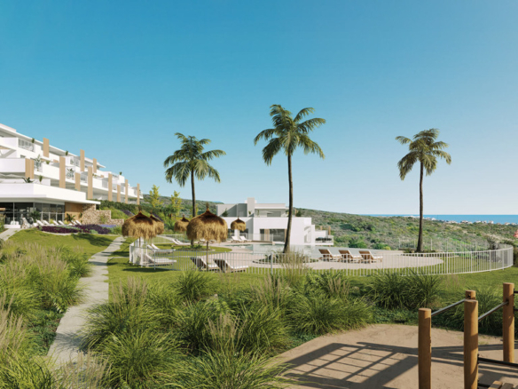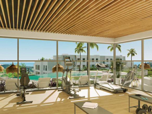 Newly Built Apartment located in the surroundings of Doña Julia Golf, this complex emerges as an oasis of elegance and tranquility on the Costa del Sol, much more than a simple residential area, this urbanization will be a refuge for lovers of sports and natural beauty . A residential complex in a privileged environment between the sea, the mountains and golf. This development has spaces for everyone: infinity pool with beach, gym, spa, Zen space, calisthenics space, a viewpoint to observe the wonderful views of the golf and the sea and garden spaces that will make you feel in paradise and presents 65 homes of 2 and 3 bedrooms, all equipped with parking and storage room.