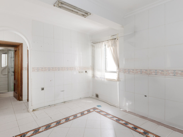 The flat has a layout that maximises natural light, offering three spacious bedrooms, two full bathrooms, a functional kitchen and a separate living room. Its exterior design is complemented by five balconies that not only provide light and ventilation, but also give it a unique character. As an added bonus, the property includes a large storage room.