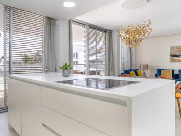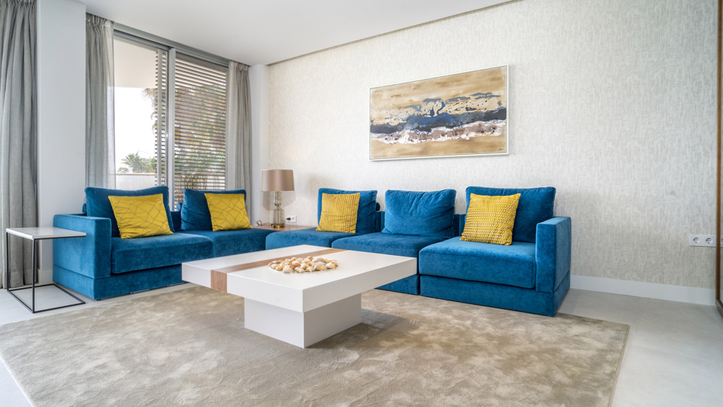 This stunning luxury apartment is located in Costa Galera, in the exclusive area of Estepona, in the province of Malaga. With an area of 180 m2, it has 3 bedrooms, 2 bathrooms and a large terrace of 20 square meters. Its south orientation allows to enjoy abundant natural light throughout the day.