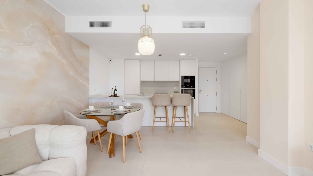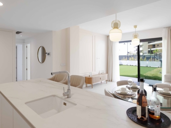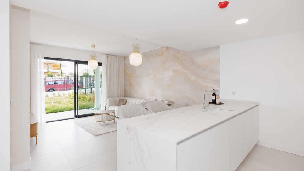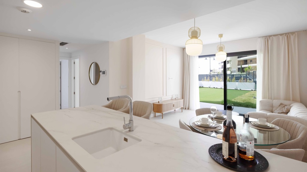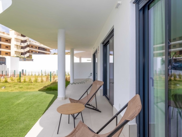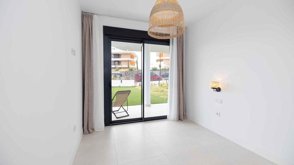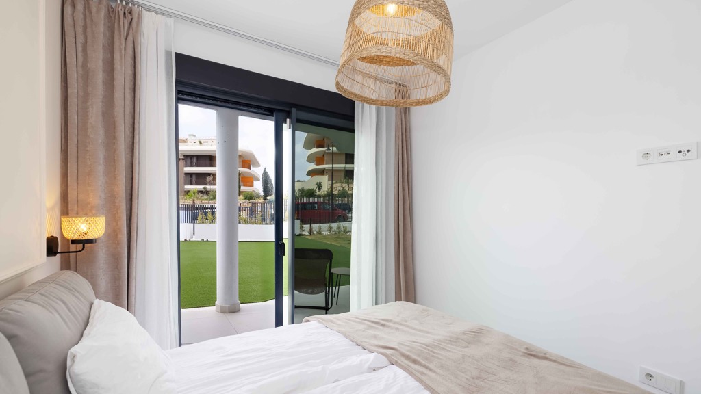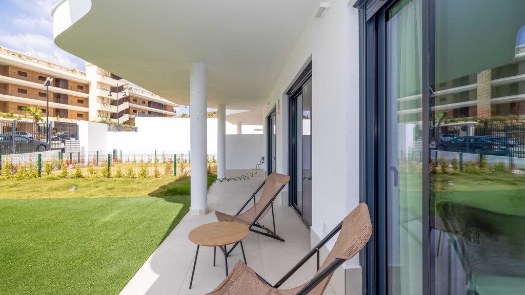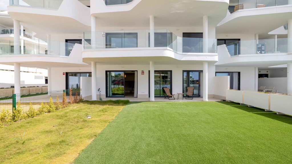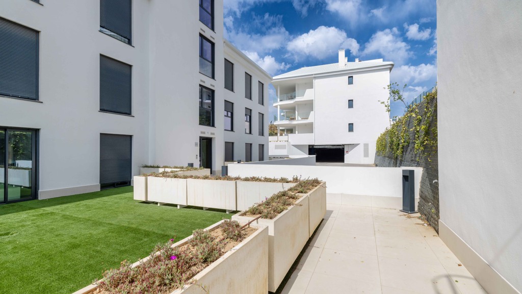 Prestigious enclave of El Higuerón, this exclusive 112 m² apartment, designed for those seeking a comfortable and relaxing lifestyle. This completely new and ready-to-move-in property features two bedrooms, two bathrooms, and a south-facing location that guarantees exceptional light in every room. Its modern and elegant design is complemented by high-quality finishes, such as marble floors and a hot/cold air conditioning system. The property also includes a spectacular 120 m² private garden with a terrace, ideal for enjoying time outdoors in a peaceful and private setting.