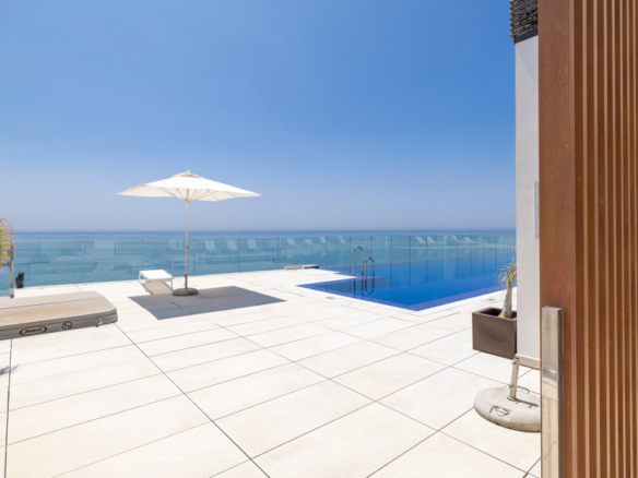 Discover this exclusive 1-bedroom, 1-bathroom apartment located in Darya Estepona, the most iconic and modern building on Estepona’s promenade. A true architectural gem set on the beachfront, offering breathtaking views of the Mediterranean Sea from every corner of the home.