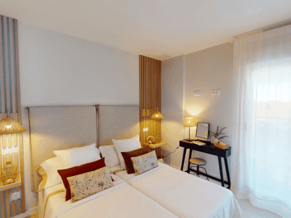 GILMAR offers you a magnificent option for a vacation home and investment in the largest residential golf and beach complex on the coast of Huelva, just a few kilometers from Portugal. The “Los Colibríes” Residential is composed of 1 to 3-bedroom homes and semi-detached houses, with a very modern design and high-quality finishes. All the homes have spacious terraces with glass railings to enjoy both the interior and exterior of your home, modern kitchens integrated into the living-dining room, and surface parking spaces. Additionally, if desired, you can also purchase a storage room.