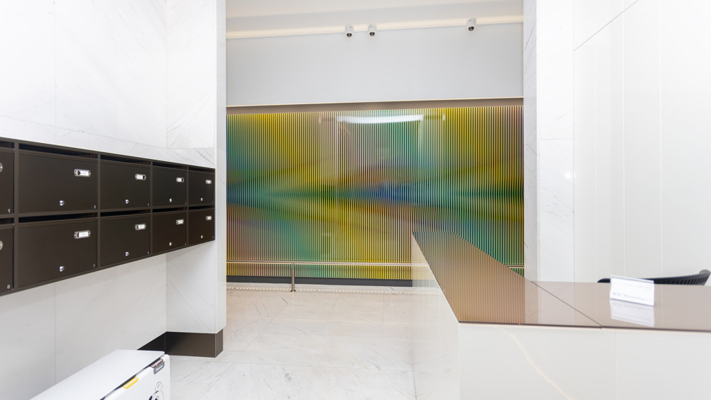 A work of art by the Venezuelan artist Carlos Eduardo Cruz-Díez is on display in the salon, which has a sale value of 400,000 euros in addition to the price of the property.