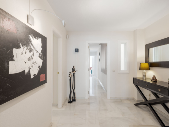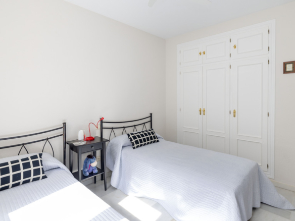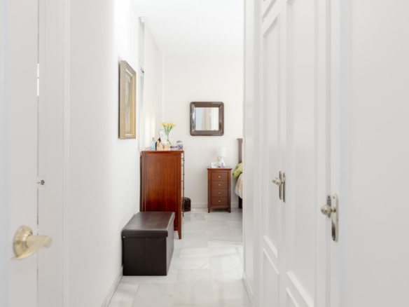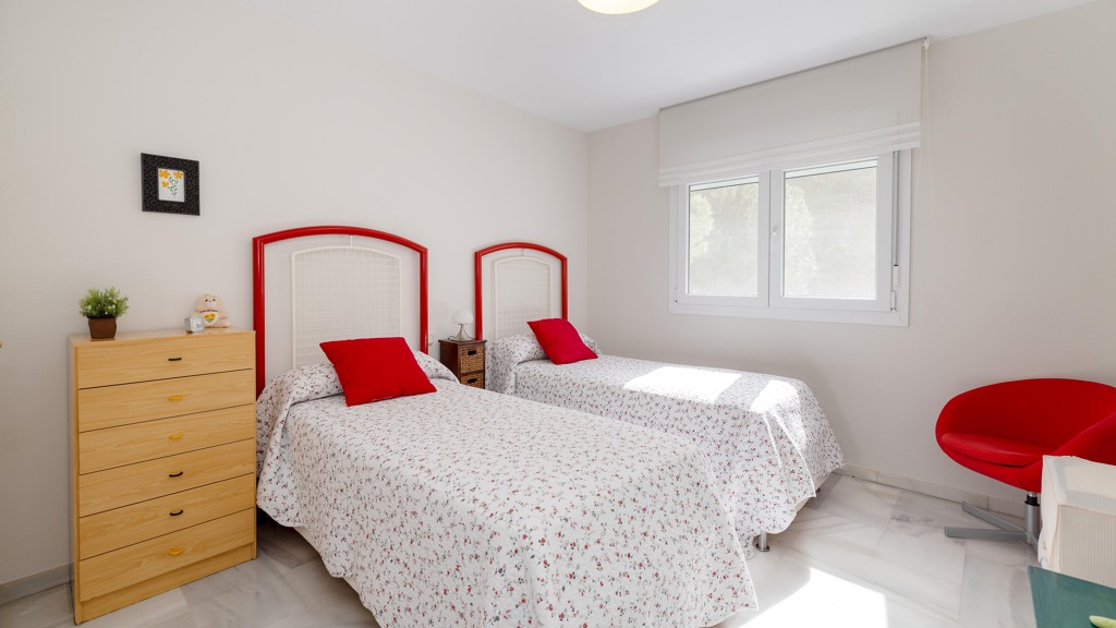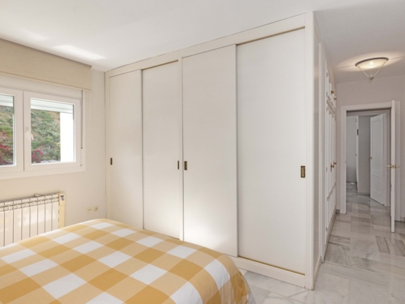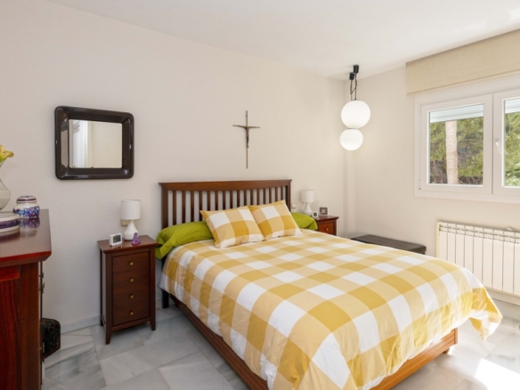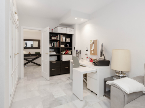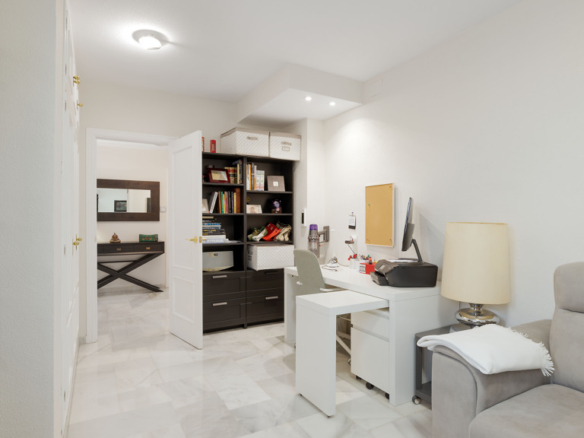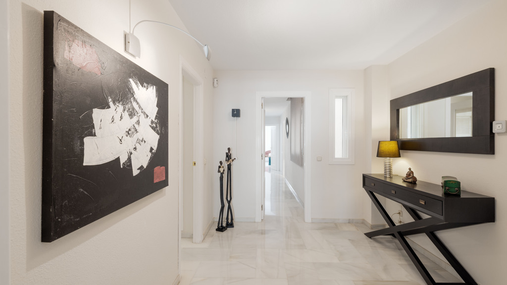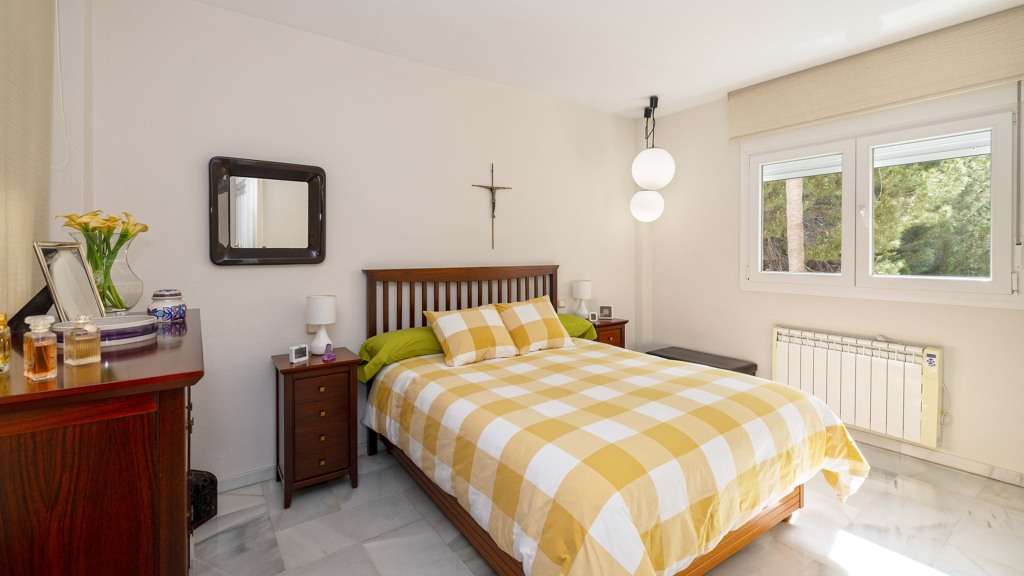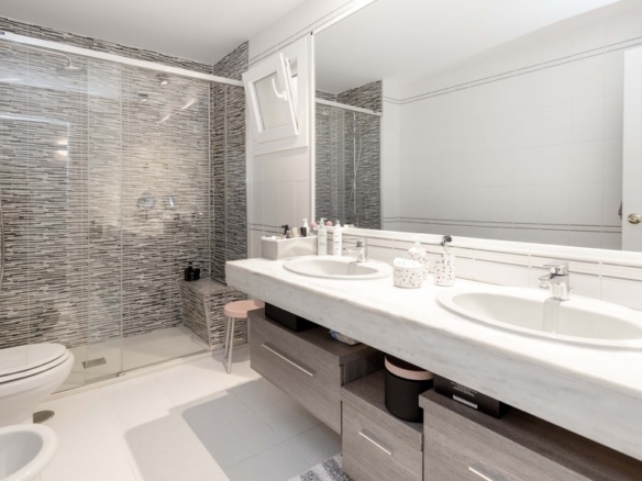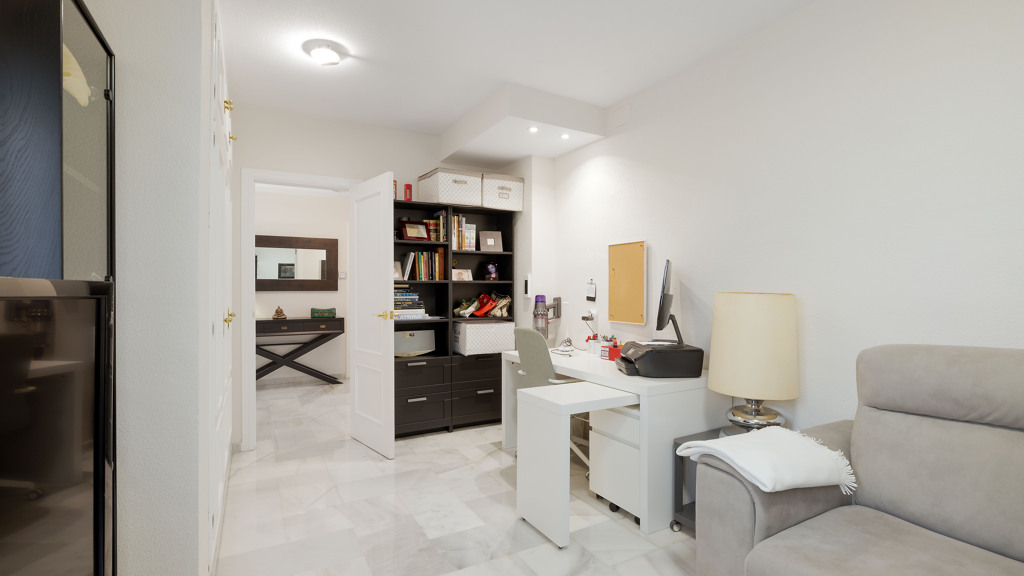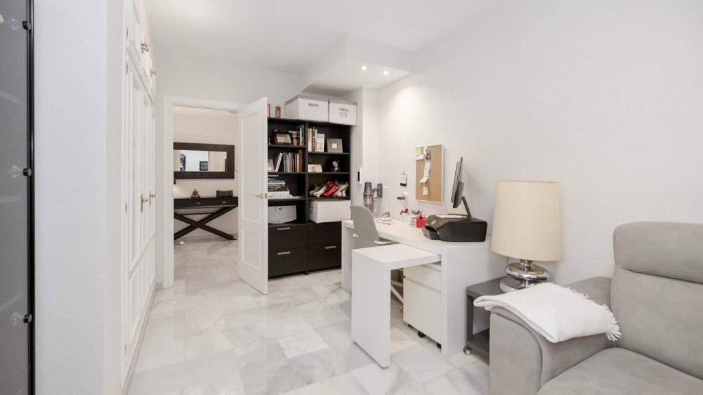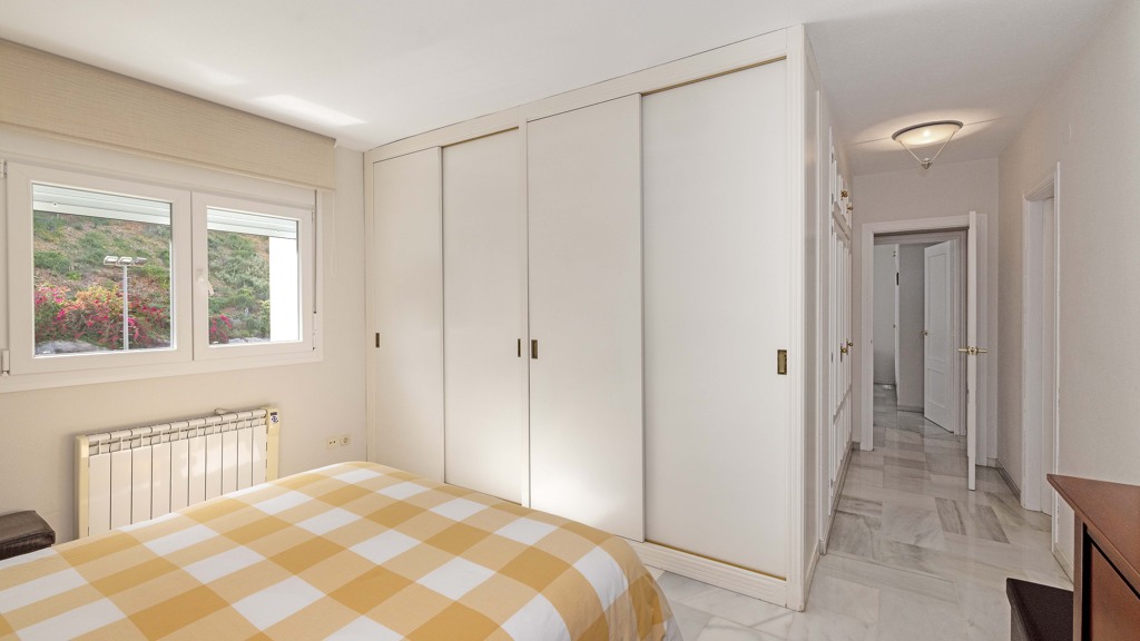 With a built area of 221 square metres, the property is distributed in spacious and well-defined spaces. It has an elegant independent living room that offers two distinct environments – living area and dining room – both connected to an impressive large terrace, perfect for enjoying the Malaga climate. The kitchen, also independent and fully furnished, includes an office area, laundry room and pantry, providing exceptional functionality. The sleeping area consists of five double bedrooms with fitted wardrobes, the master bedroom with en-suite bathroom. The property also has a second complete bathroom and originally also a guest toilet.