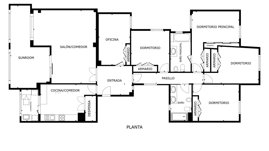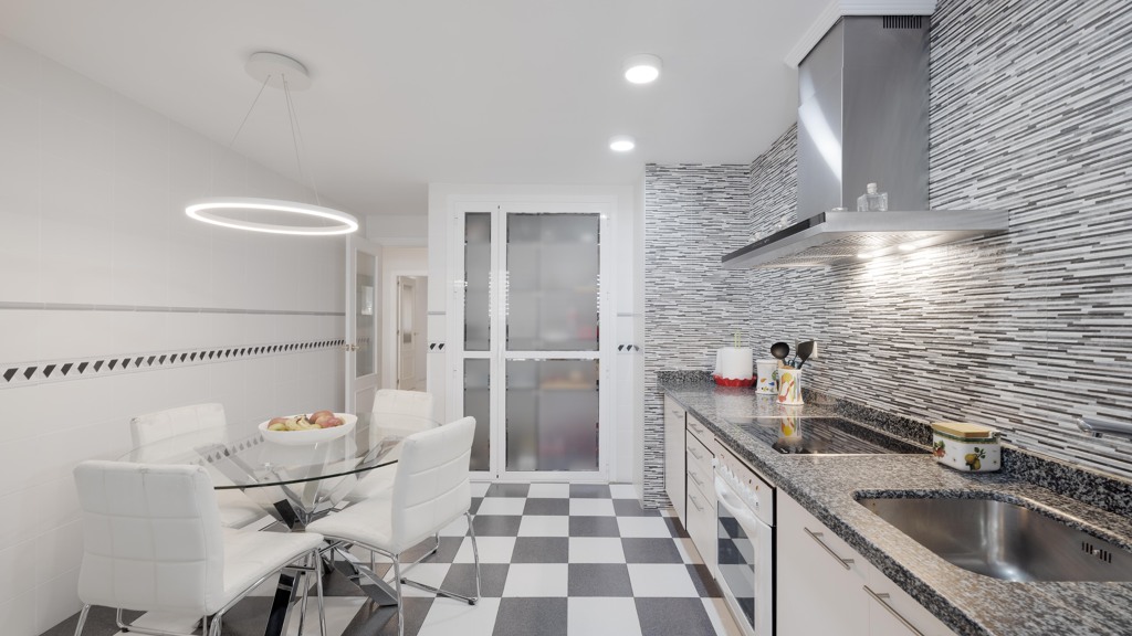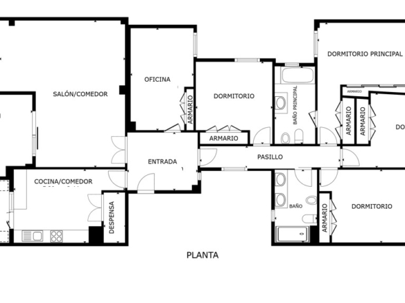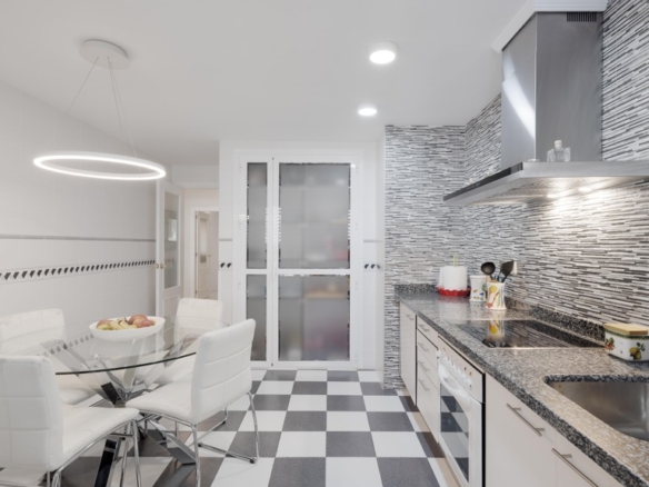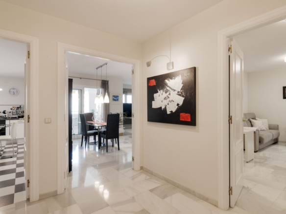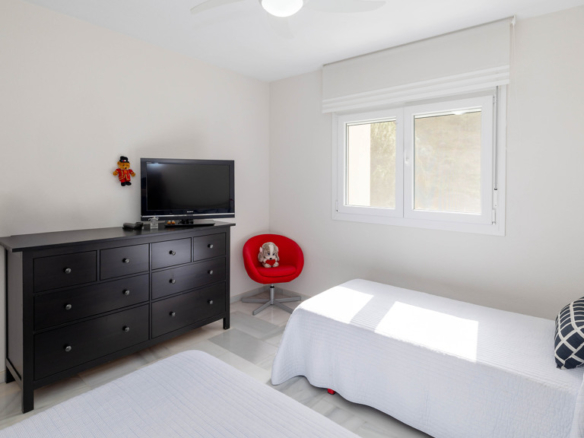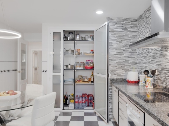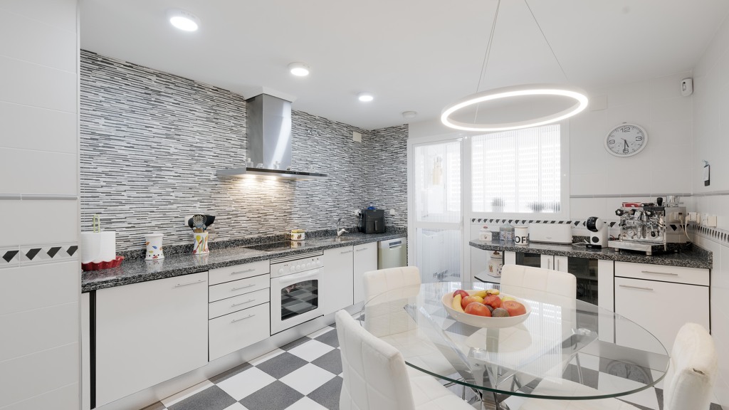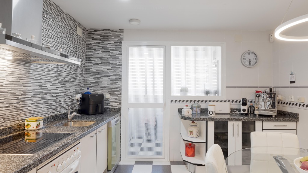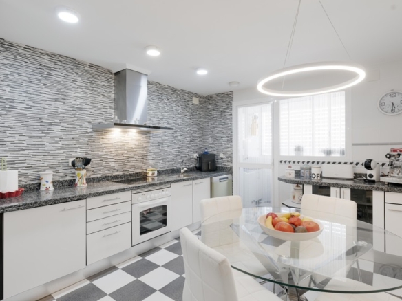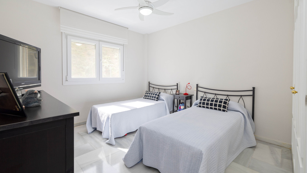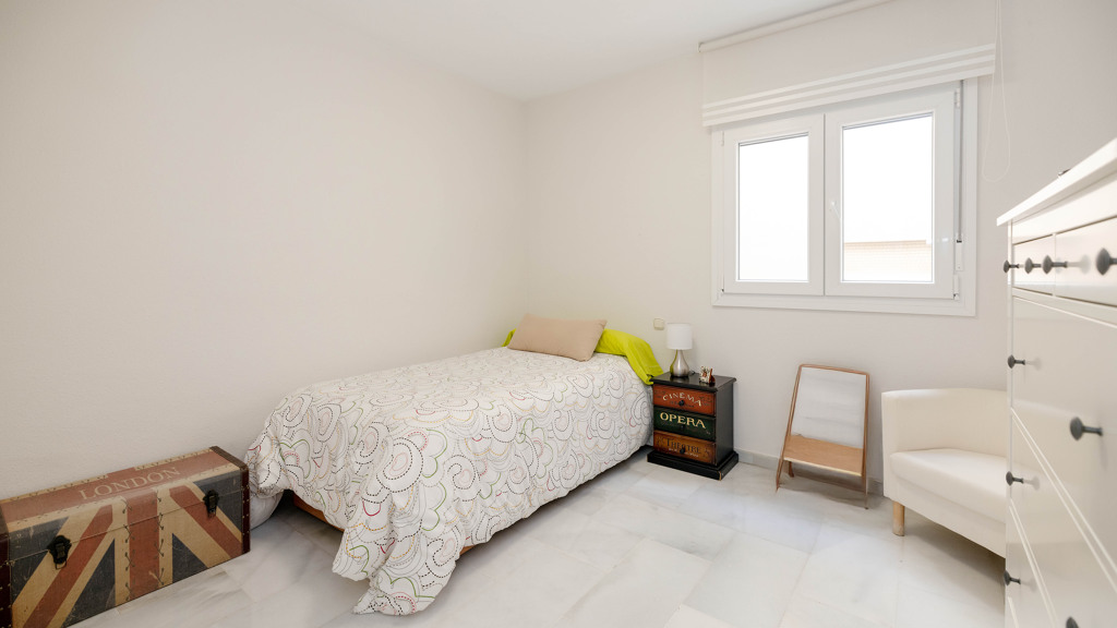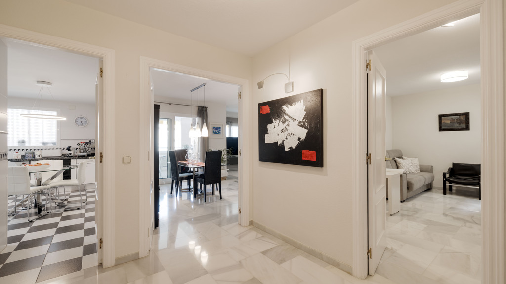 With a built area of 221 square metres, the property is distributed in spacious and well-defined spaces. It has an elegant independent living room that offers two distinct environments – living area and dining room – both connected to an impressive large terrace, perfect for enjoying the Malaga climate. The kitchen, also independent and fully furnished, includes an office area, laundry room and pantry, providing exceptional functionality. The sleeping area consists of five double bedrooms with fitted wardrobes, the master bedroom with en-suite bathroom. The property also has a second complete bathroom and originally also a guest toilet.