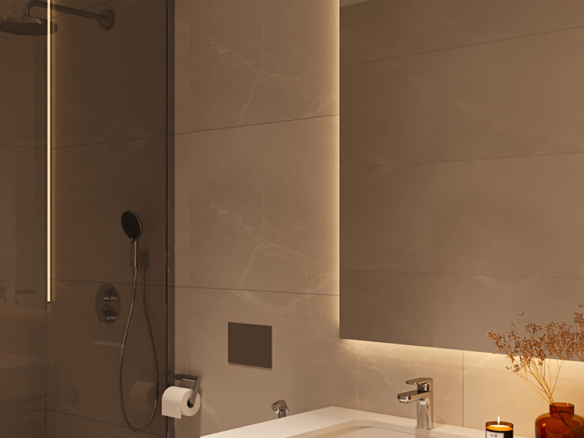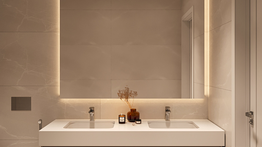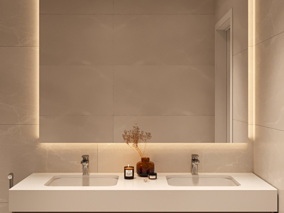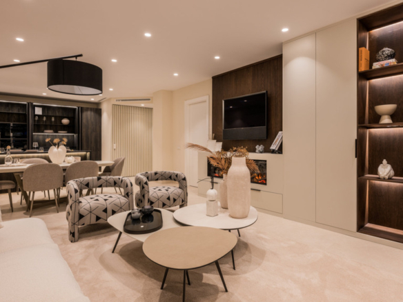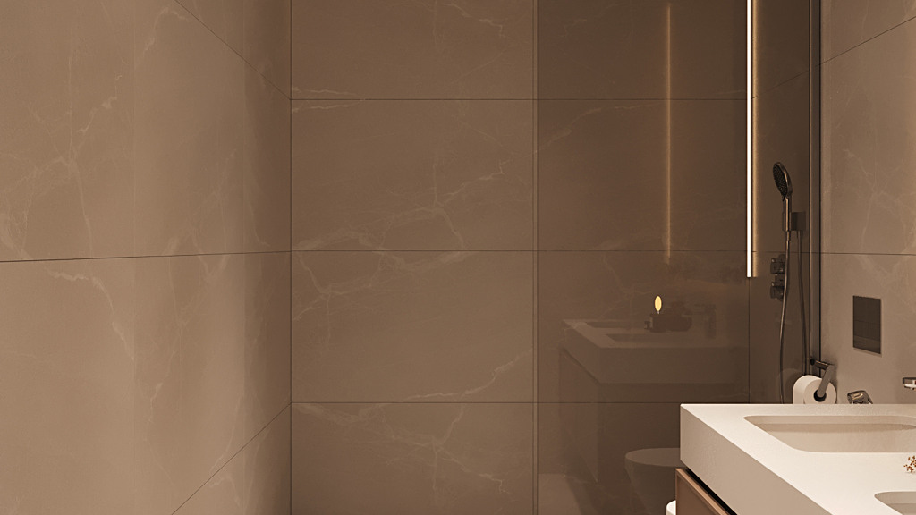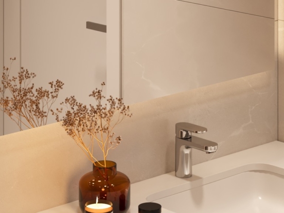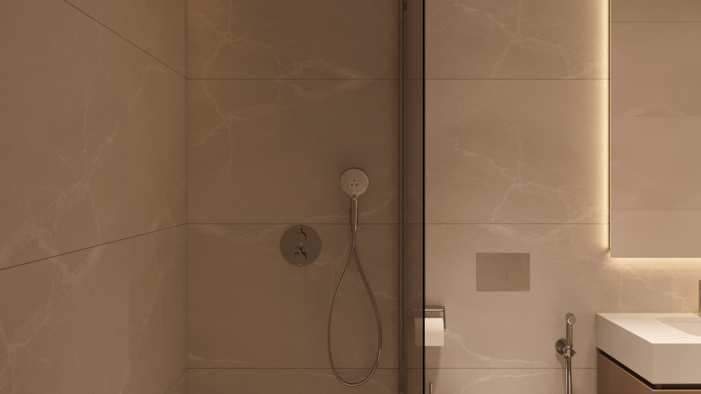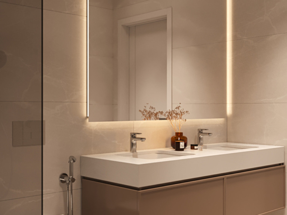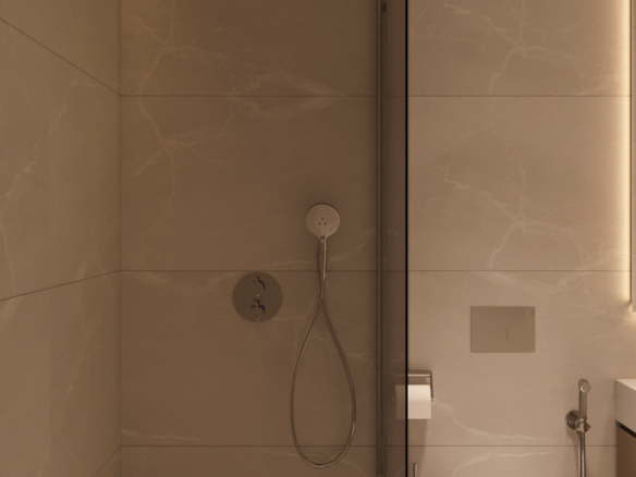 The master bedroom includes an en-suite bathroom, while the second bedroom has access to a separate full bathroom—both finished with quality materials and elegant details.