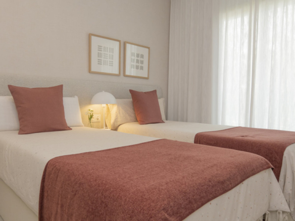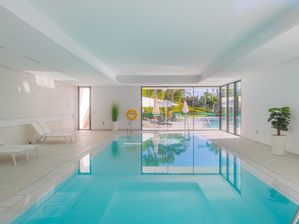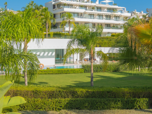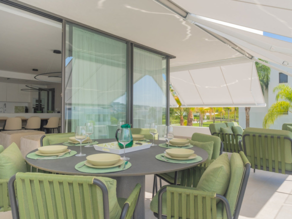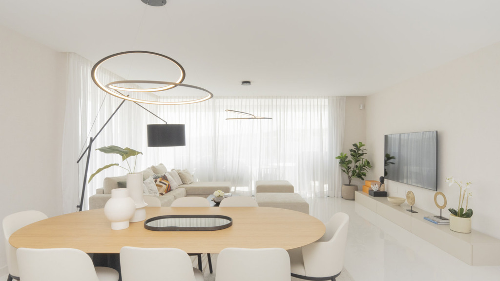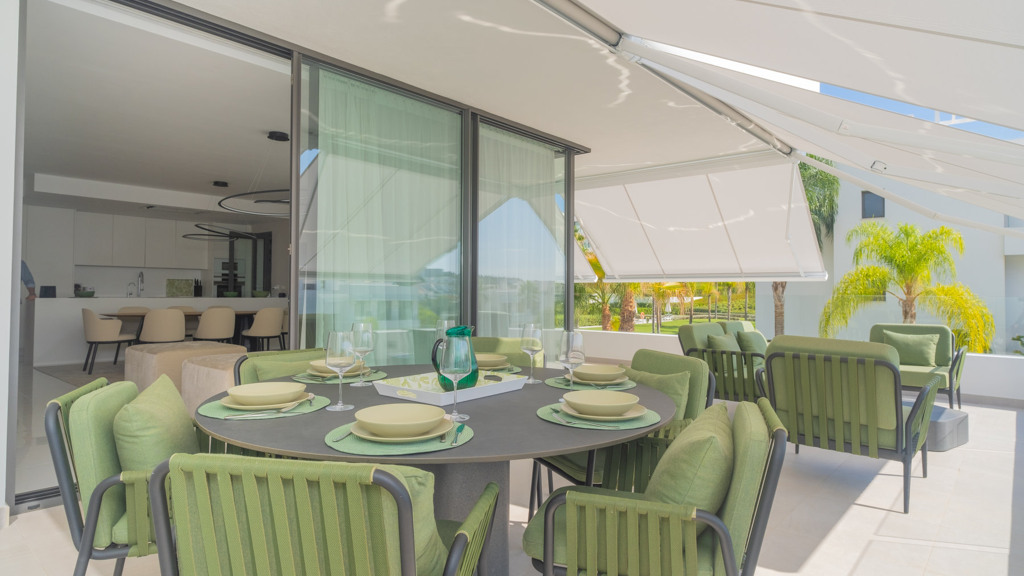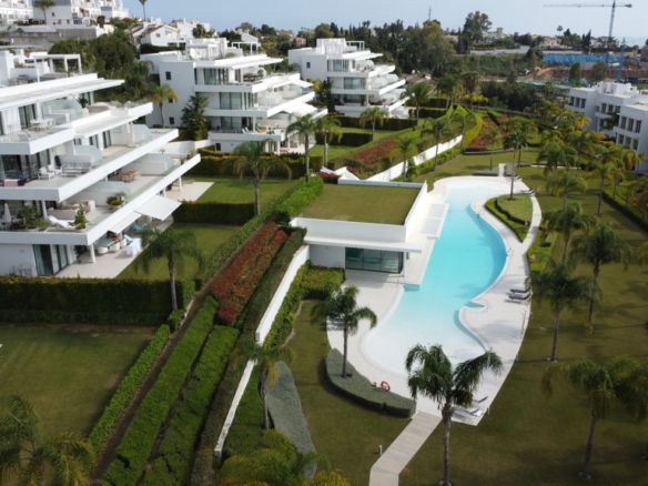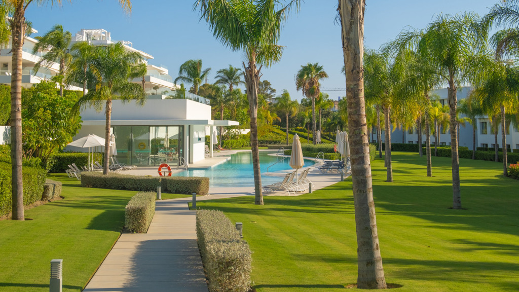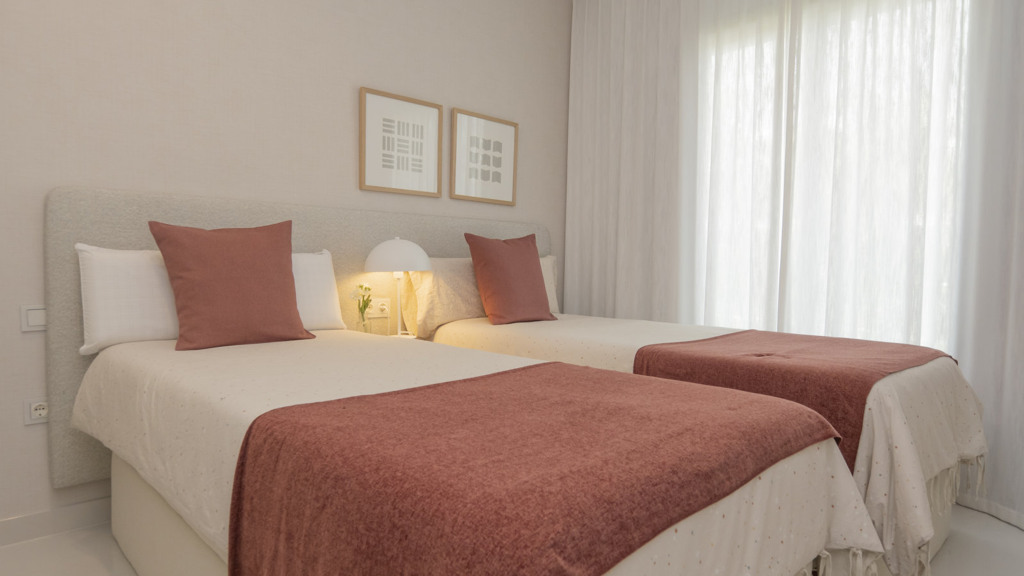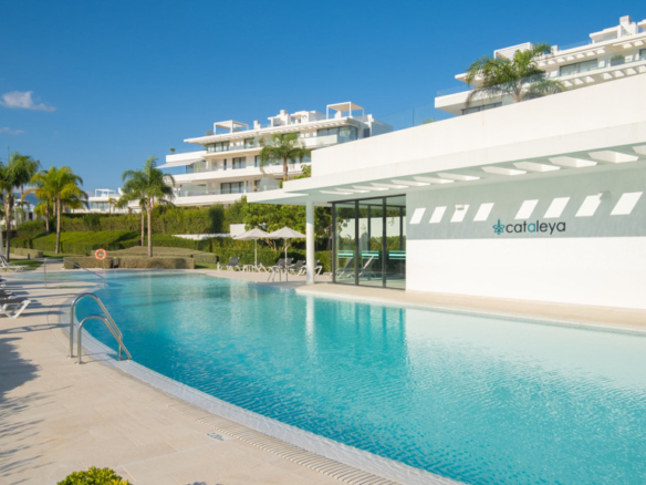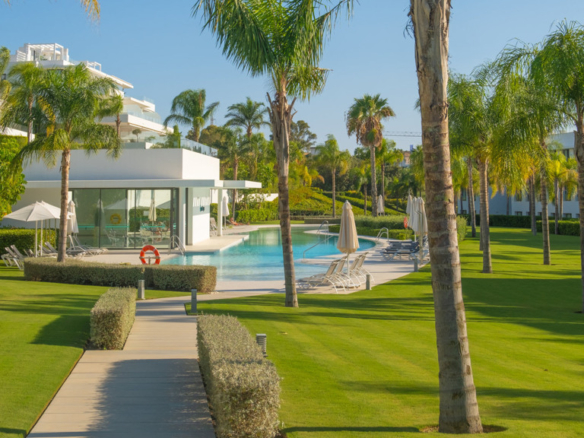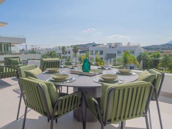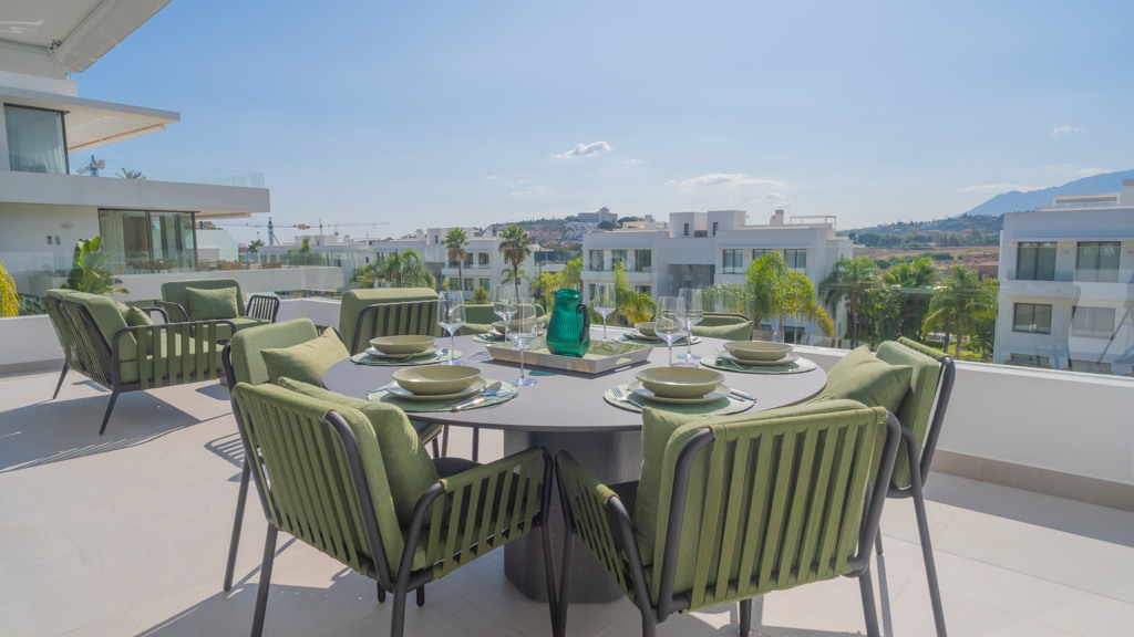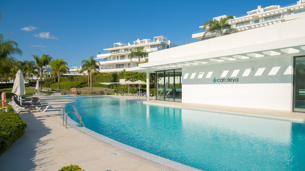 The New Golden Mile is the perfect place to find your new home. In this magnificent new development in Nueva Atalaya, you’ll discover 2- and 3-bedroom apartments that perfectly combine luxury and comfort to offer you an exceptional lifestyle. Every detail has been carefully considered to provide you with maximum satisfaction. Immerse yourself in a world of relaxation and well-being with the impressive communal areas, including an indoor pool, gym, and spa. You can also enjoy lush landscaped gardens that will transport you to an oasis of tranquility. The quality of this development is unsurpassed, as it has been built with top-quality materials throughout. The apartments will pleasantly surprise you.