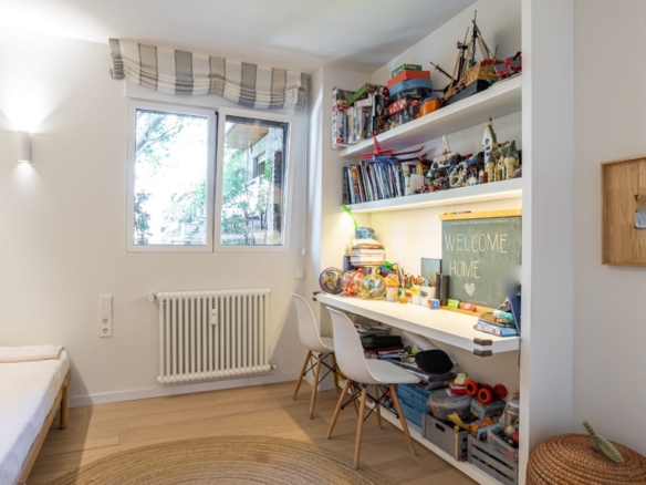 This property is located within a gated community that guarantees maximum security with 24-hour surveillance. Among its amenities are a beautiful garden and a swimming pool, ideal for enjoying Madrid’s climate and moments of relaxation.