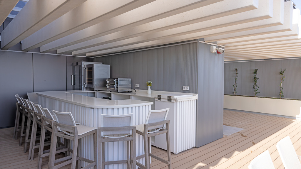 Metrovacesa Tower’s facilities are designed to exceed the most demanding expectations. From a luxurious spa to a state-of-the-art gymnasium, a games room, an innovative co-working area, as well as indoor and outdoor swimming pools, each space is meticulously planned to meet the needs and desires of the residents.