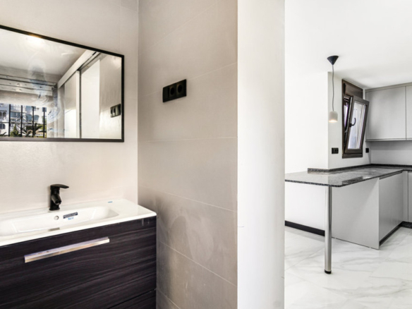 The recently renovated kitchen combines contemporary lines with maximum functionality. Spacious and bright, with pleasant views over the green areas, it also offers potential for extension or personalisation, making it a versatile and welcoming space.