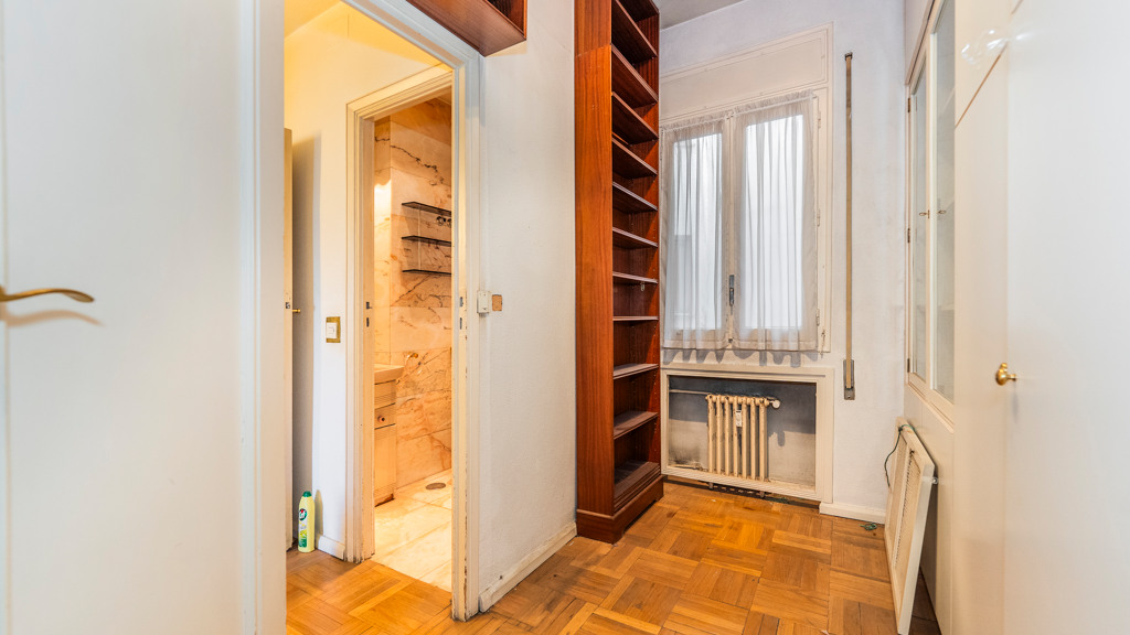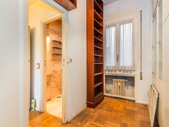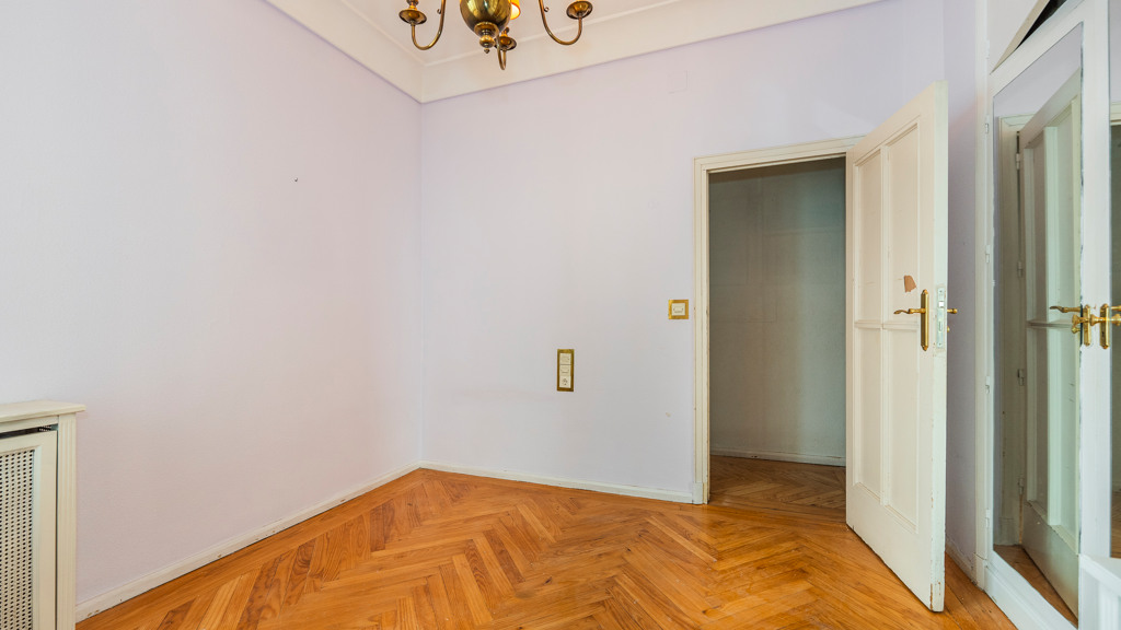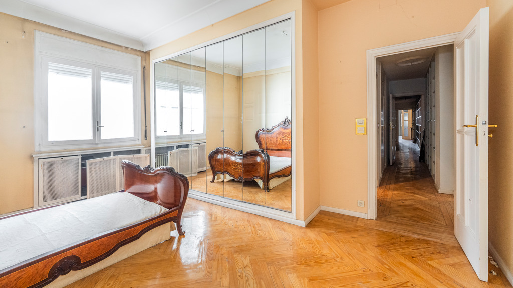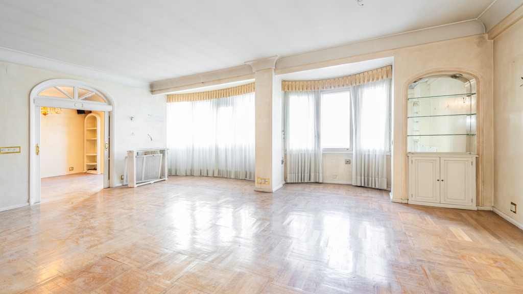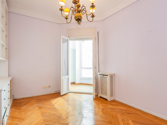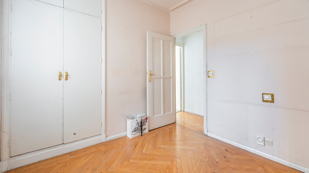 Next to Avenida de América, with immediate access to the M-30, public transportation within reach, located across from the El Viso neighborhood. Classic building with a carriage passage, one apartment per floor. Property to renovate, featuring 3 main areas: living room, dining room, and office. Spacious rooms, offering a multitude of possibilities. Spectacular master bedroom, ceilings over 3 meters high, wooden flooring, a 2-square-meter storage room, and shared ownership of a garage for all residents.