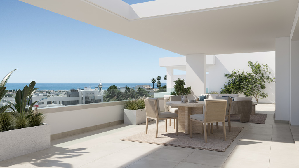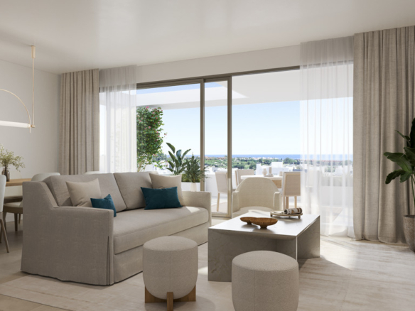 New Construction Apartment with sea views in an exclusive development in Selwo, in what is known as the new ‘Golden Mile’ of the Costa del Sol. Spacious apartments and exclusive ground floor apartments with garden or penthouses with terrace facing the sea, surrounded by nature At one step to beach. This apartment has been designed thinking that you can make the most of your free time: stroll through its well-kept green areas, take a dip in its five pool areas, relax in its spa, enjoy a movie at the cinema, take care of yourself in the gym or take a class in the fitness room… All without leaving your new home in Estepona.