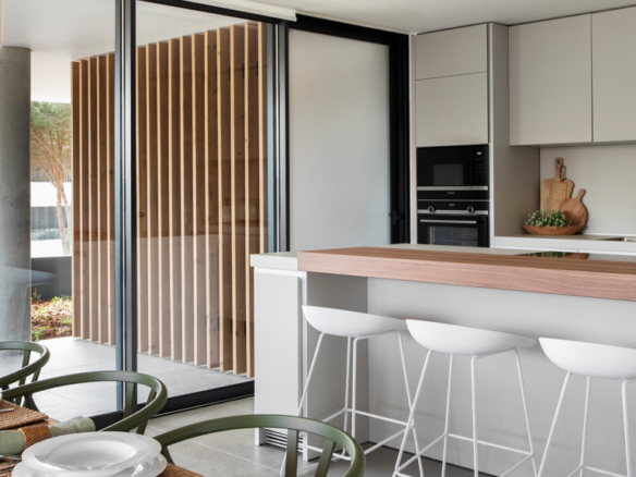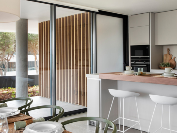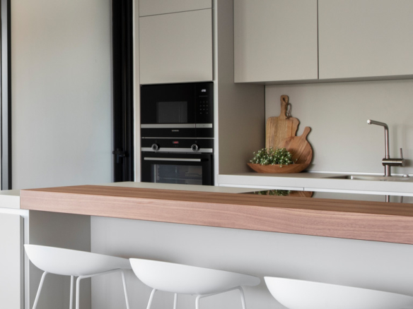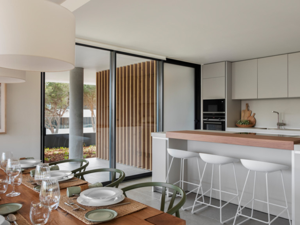 The kitchen, with its modern design and fully equipped with high-end appliances, offers more than enough space for cooking enthusiasts. It also includes a guest toilet, perfect for welcoming visitors without disturbing the privacy of the main bedrooms.