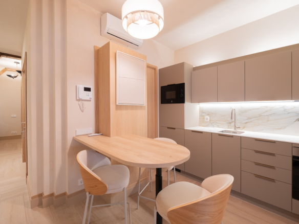 The apartment has two bedrooms and two bathrooms, all designed with the highest standards and impeccably maintained, as it is brand new. The modern and functional kitchen blends perfectly into the luxurious surroundings. The exterior-facing property is notable for its light and features a separate living room that becomes the perfect place to relax and enjoy the tranquility in the heart of the city.
