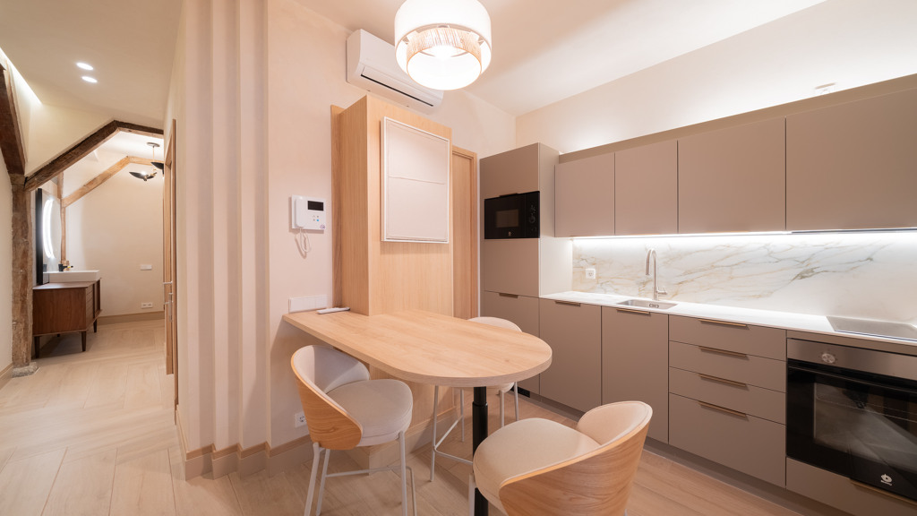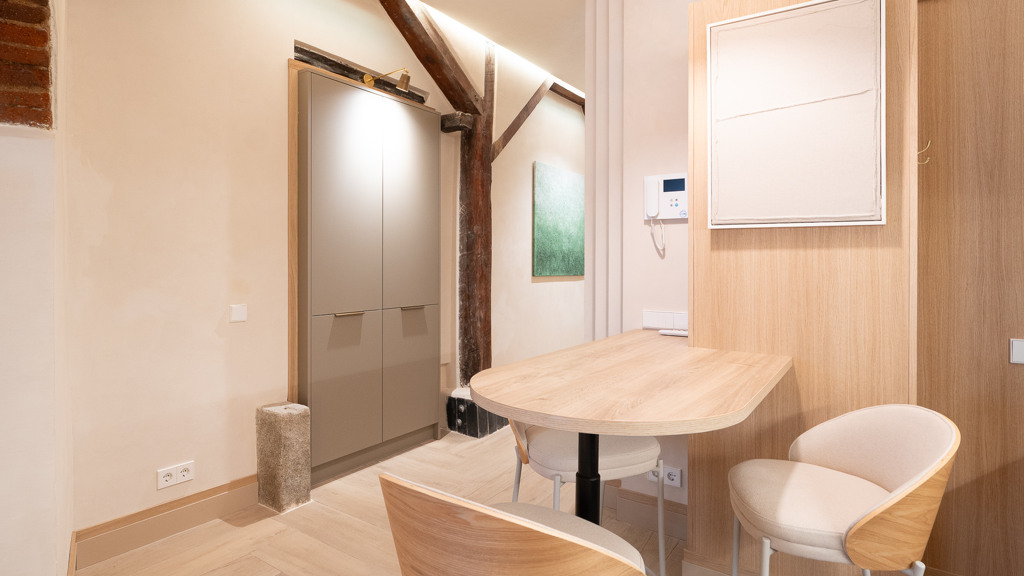 Regarding public transportation, the location is unbeatable. The nearest metro lines are 1, 3, and 10, with stations such as Tribunal and Noviciado just a few minutes’ walk away. The area is also well connected by several bus lines that facilitate travel throughout the city, such as lines 3, 147, and M2.