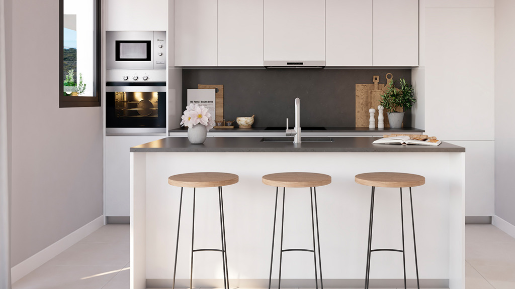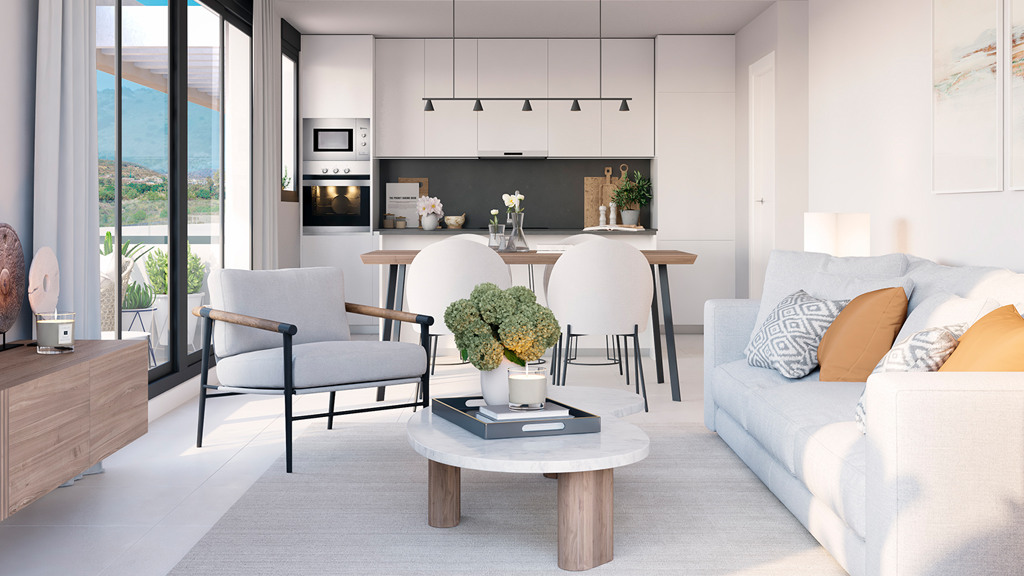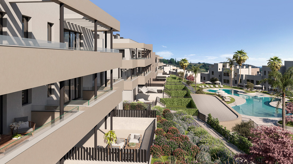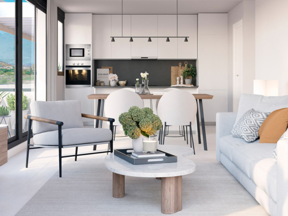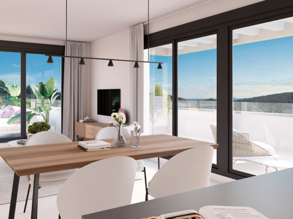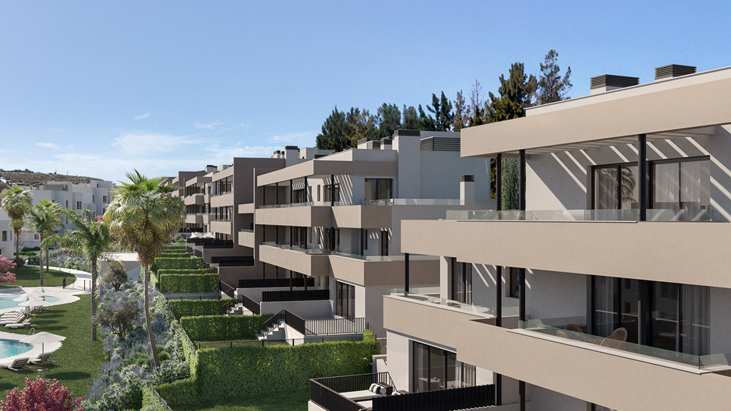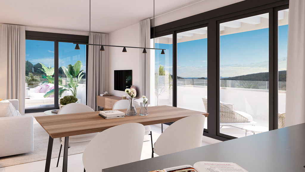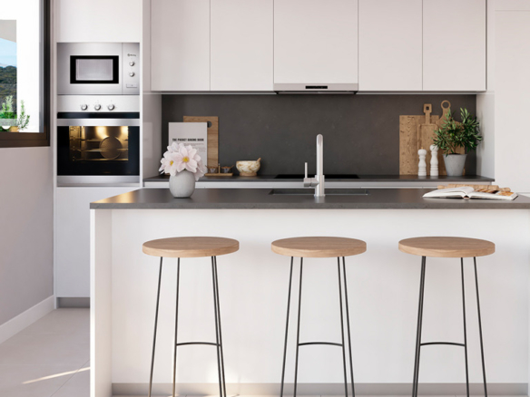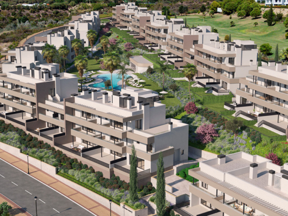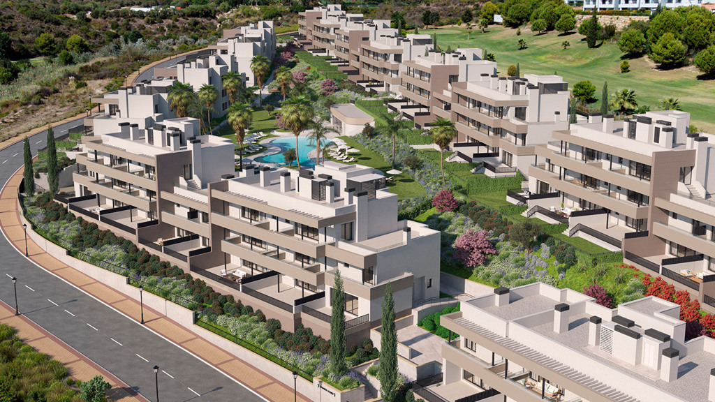 This residential complex will have a total of 134 homes of 2, 3 and 4 bedrooms distributed in 9 blocks, whose avant-garde and modern design blends in with the adjoining golf course. Its west-southwest orientation provides maximum use of natural light and views that allow you to contemplate the surrounding natural landscape, some of them with sea views.