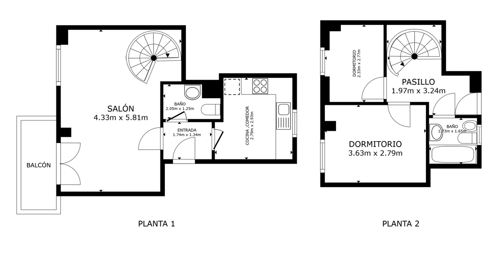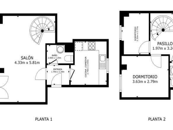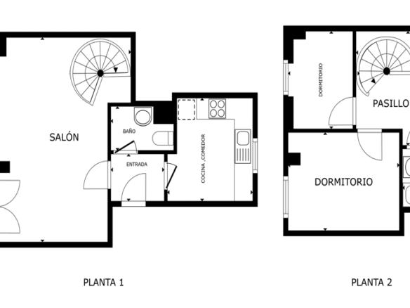 Upstairs: it consists of two bedrooms and a bathroom. This floor has access to a small terrace facing an inner courtyard.