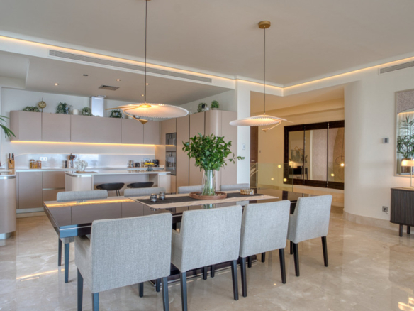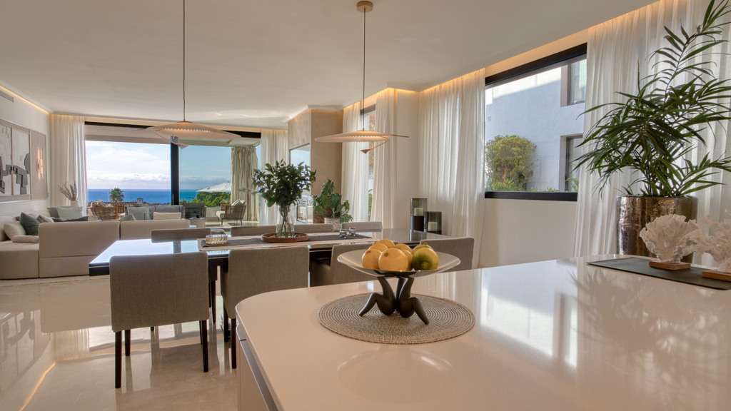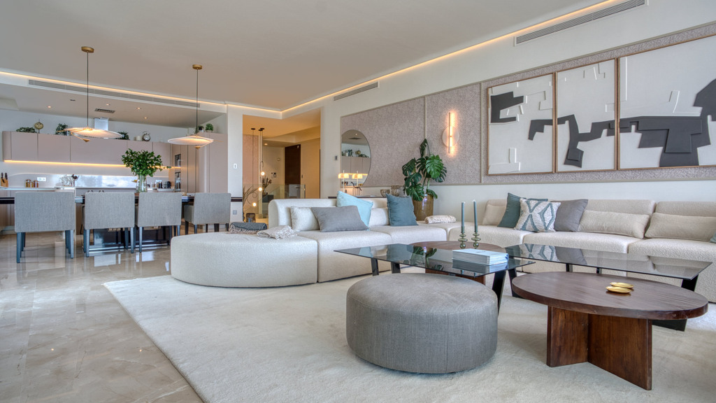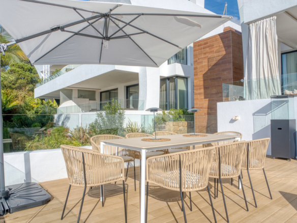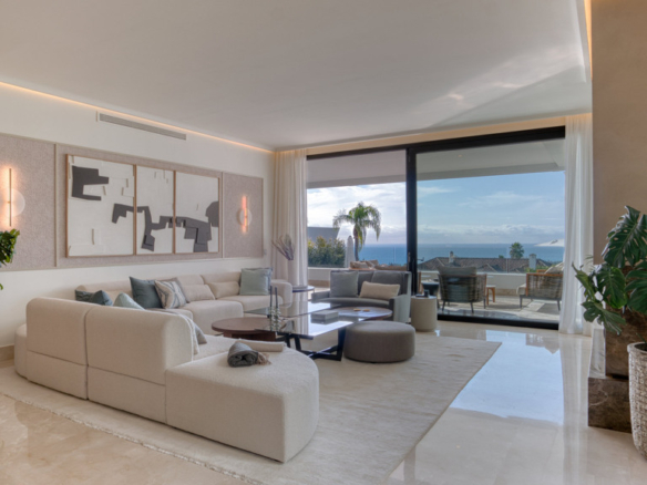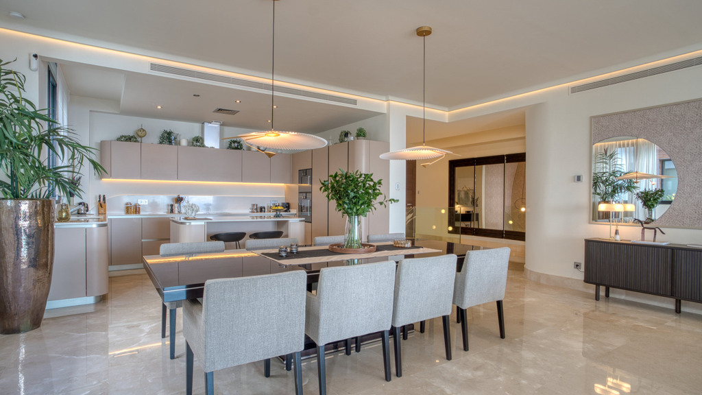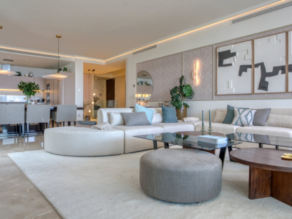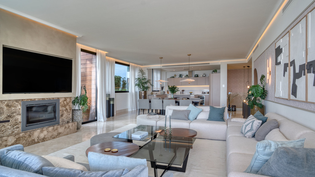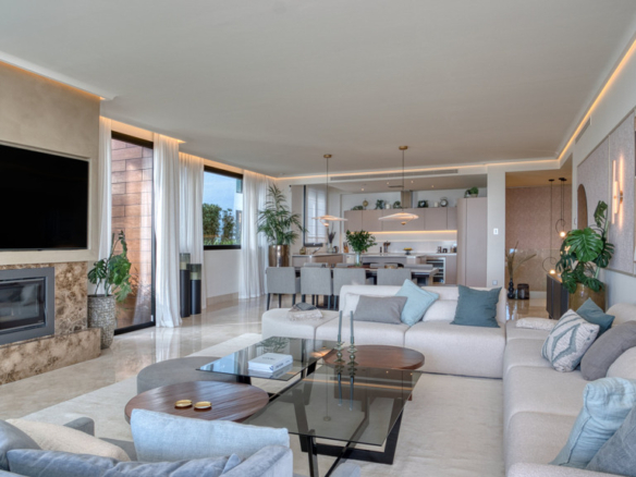 Exceptional four bedroom, south facing luxurious property in the prestigious La Reserva De Sierra Blanca, Marbella. This beautifully renovated ground floor duplex apartment has been designed and finished to the highest standard to provide elegant living in a prime location.