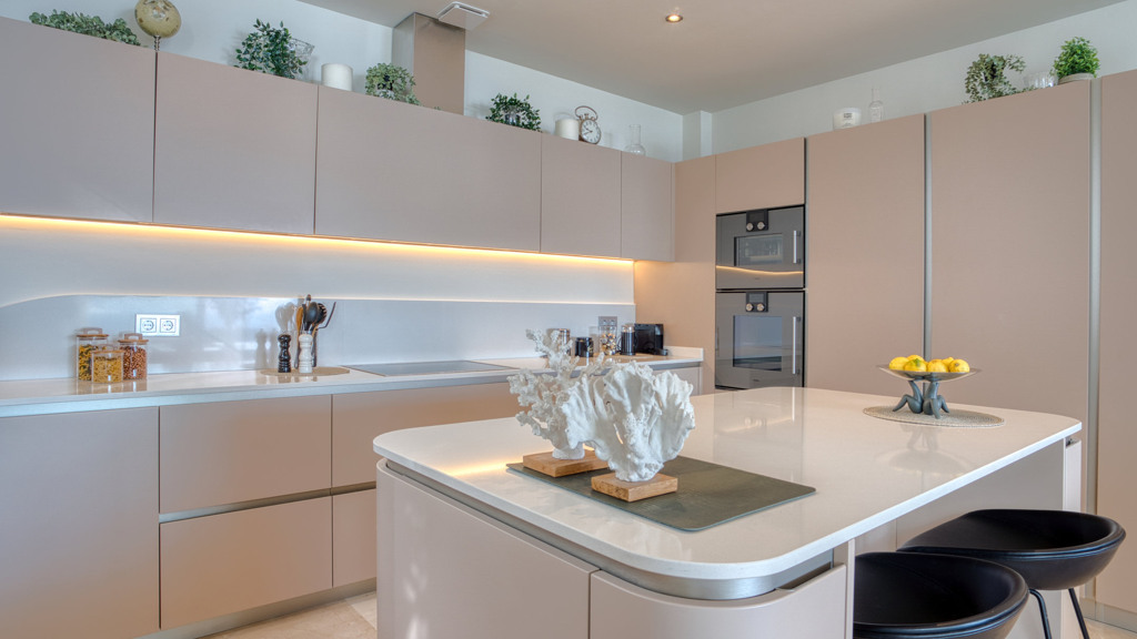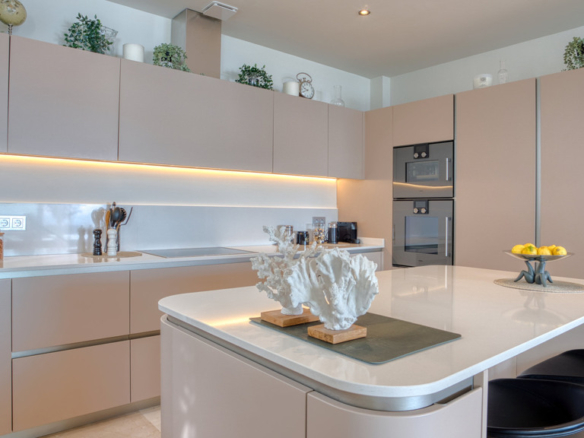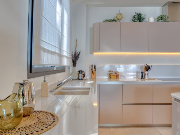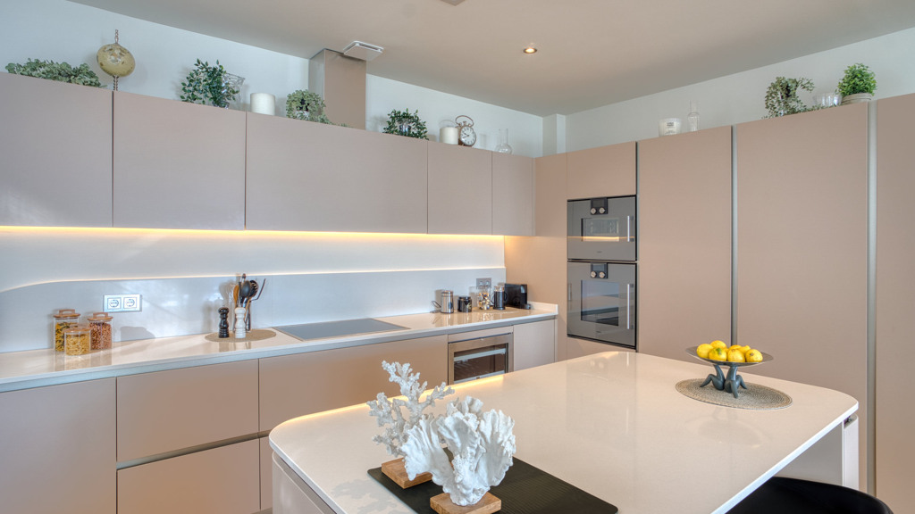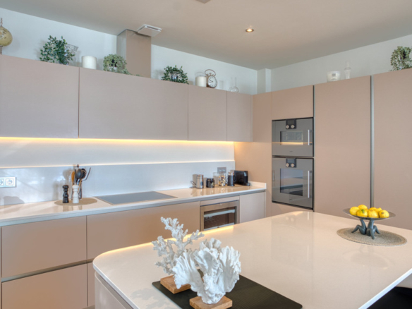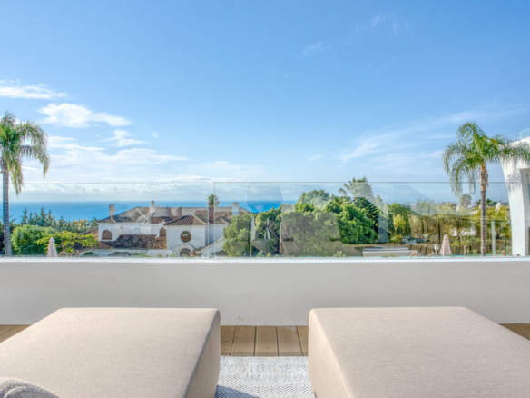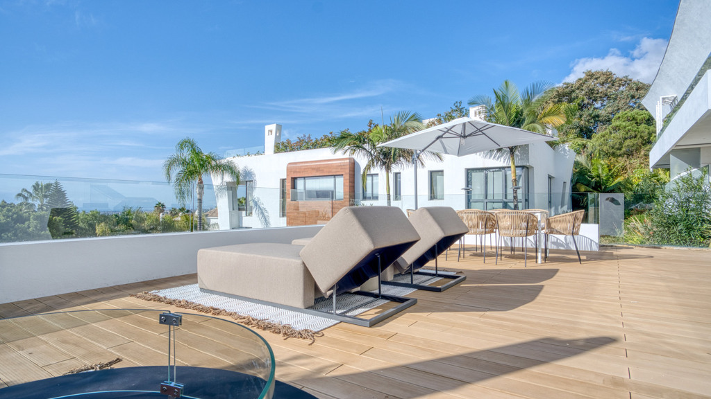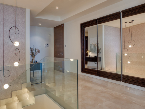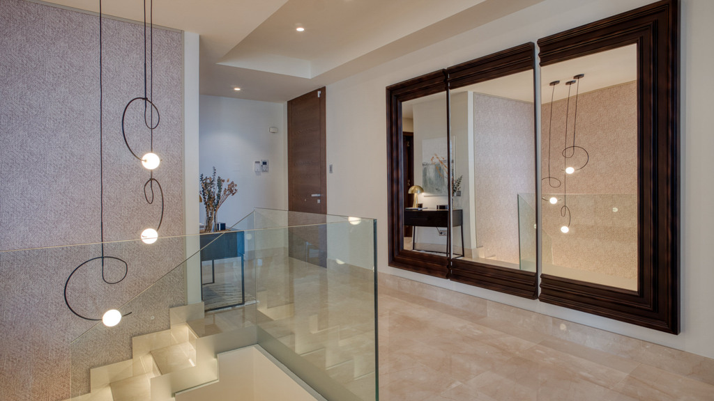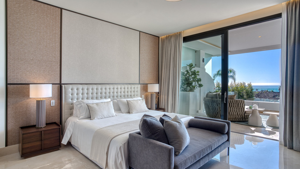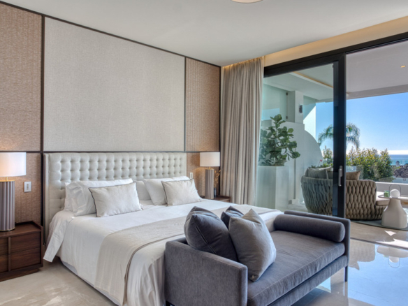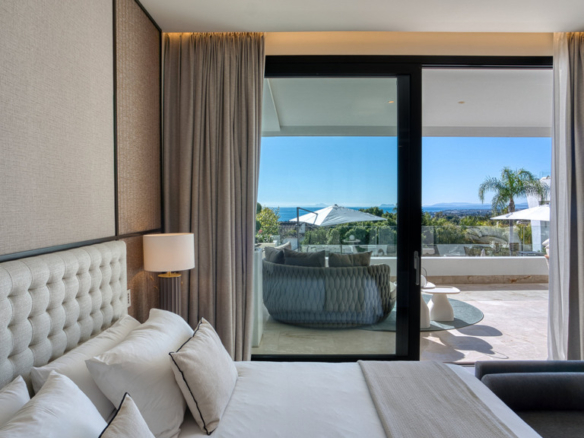 The property consists on the entrance level of an open plan living and dining area with patio doors leading to the private terraces that boast stunning sea views; fully fitted open plan kitchen with high end appliances; the master suite with access to the terrace; two guest suites; and a guest toilet.