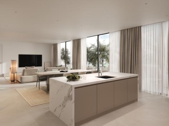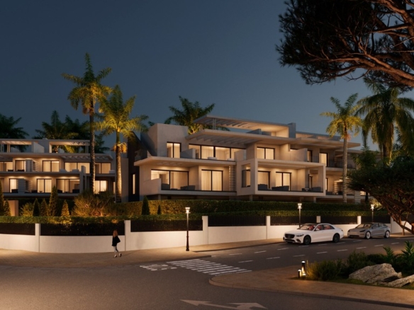 Magnificent new build duplex penthouse in a complex located in an established low-rise residential area (3 floors), next to a school (15 meters), a park (30 meters), a sports center with soccer fields (300 meters), a hospital (300 meters), and within walking distance (400 meters) of supermarkets, restaurants, bars, and a pharmacy. The plot is located in a quiet area near the golf course (50 meters), with no noisy traffic, as the site is set back from the neighborhood’s main traffic artery, but with quick access to the main A7 road: 5 minutes drive to Estepona’s historic center and Estepona port; 15 minutes drive to Puerto Banús; 20 minutes drive to Marbella; 45 minutes drive to Malaga and Gibraltar airports. The distance to the beach is 1 km. The apartments have sea, golf, and mountain views. The development infrastructure: 48 apartments (3 floors); underground parking for 80 parking spaces and 48 storage rooms.