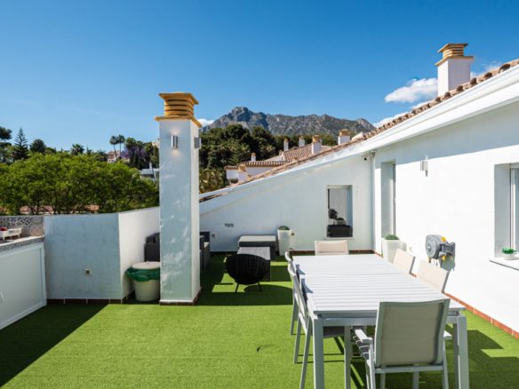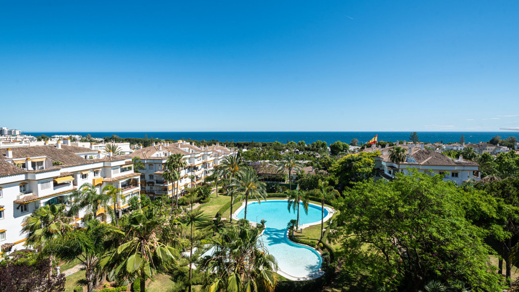 This stunning duplex penthouse is located in the exclusive urbanisation of Hacienda Nagüeles, in the prestigious area of Marbella’s Golden Mile. With a surface area of 377 m2, this high-rise property offers generous space and a perfect distribution to enjoy comfort and luxury. It has several terraces, one of them covered, with beautiful views of the sea and the entire Mediterranean coastline, barbecue area and outdoor dining area to enjoy the good weather of Marbella.