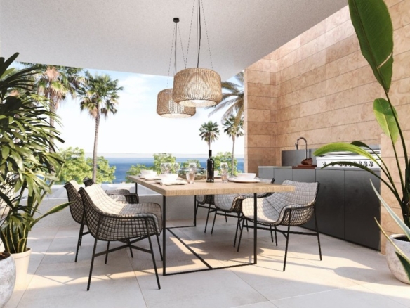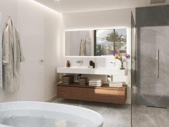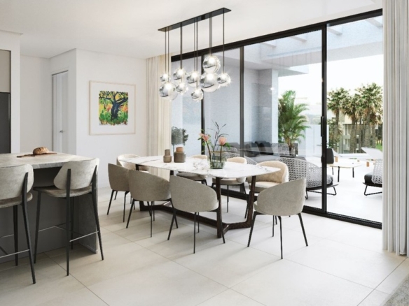 Spectacular 4-bedroom duplex penthouse in a new luxury development on the New Golden Mile, this urbanization is a unique concept in tourist development for the Costa del Sol. Carefully designed to integrate perfectly into the environment, it is designed to accentuate the lifestyle par excellence and the informal atmosphere of Estepona. This community presents an exceptional and truly ideal living experience. Featuring sophisticated architecture, inspiring interiors by Gunni – Trentino and, as standard equipment in all apartments, Lutron’s wireless smart home automation system, a first for apartment development on the Costa del Sol. The development is built around 27,000 m2 of tropical gardens with three outdoor swimming pools, one of which is heated, a central clubhouse complete with multi-purpose lounge, bar, cafe, spa, indoor pool and gym, and 24-hour security.
