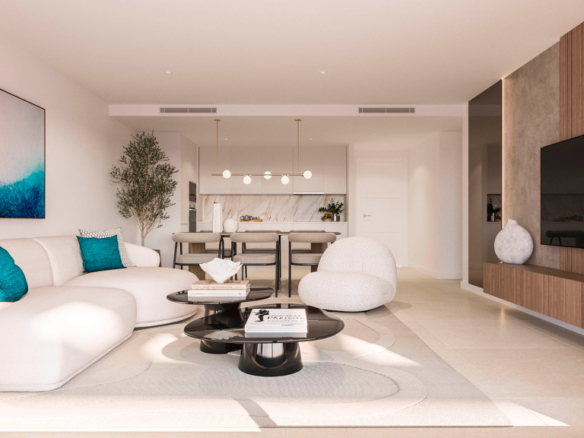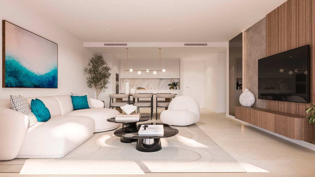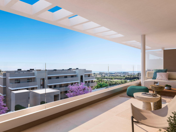 This apartment is located in a new construction development that offers you exclusive apartments for sale in Estepona, just 5 minutes from the beach, and 20 minutes from Puerto Banús or Marbella. Considered the new ‘Golden Mile’ of the Costa del Sol, this expansion area near Marbella is the perfect enclave for your new home or your new vacation spot. Surrounded by nature, close to prestigious golf courses and with all the services you can imagine.