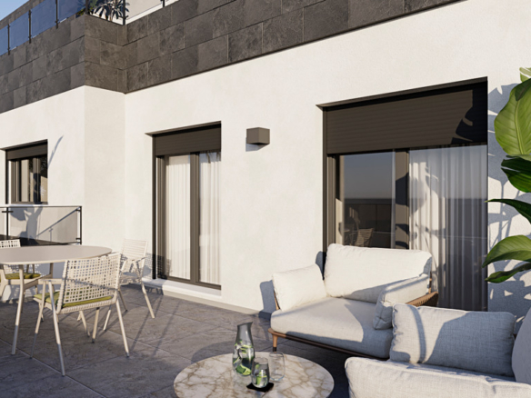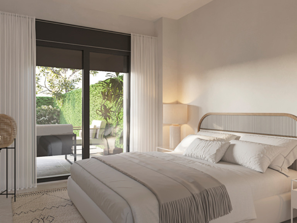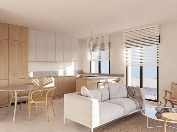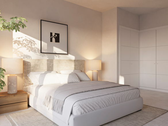 Interiors feature natural materials, soft ivory palettes, and rounded lines that convey warmth and serenity. Ground-floor homes offer elevated private gardens ensuring privacy, while the exclusive penthouses boast panoramic terraces perfect for unforgettable sunsets. The layouts prioritize natural light, visual connection with the landscape, and flexibility: three adaptable bedrooms, two full bathrooms, and a guest toilet for added comfort.