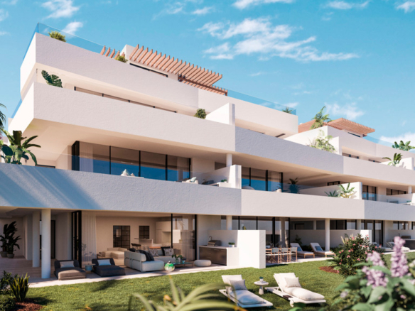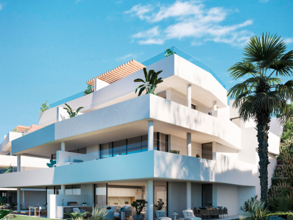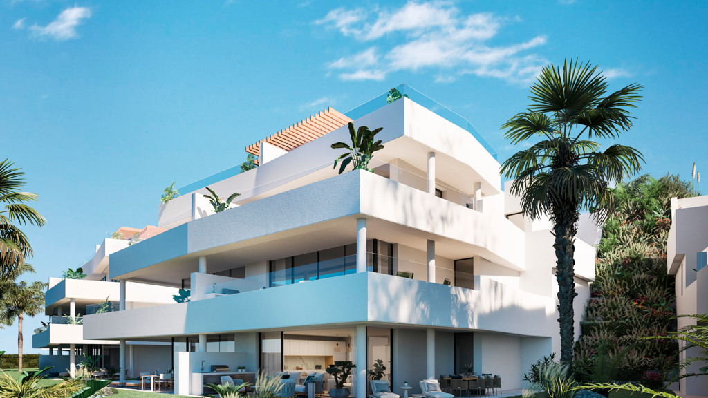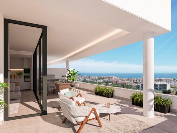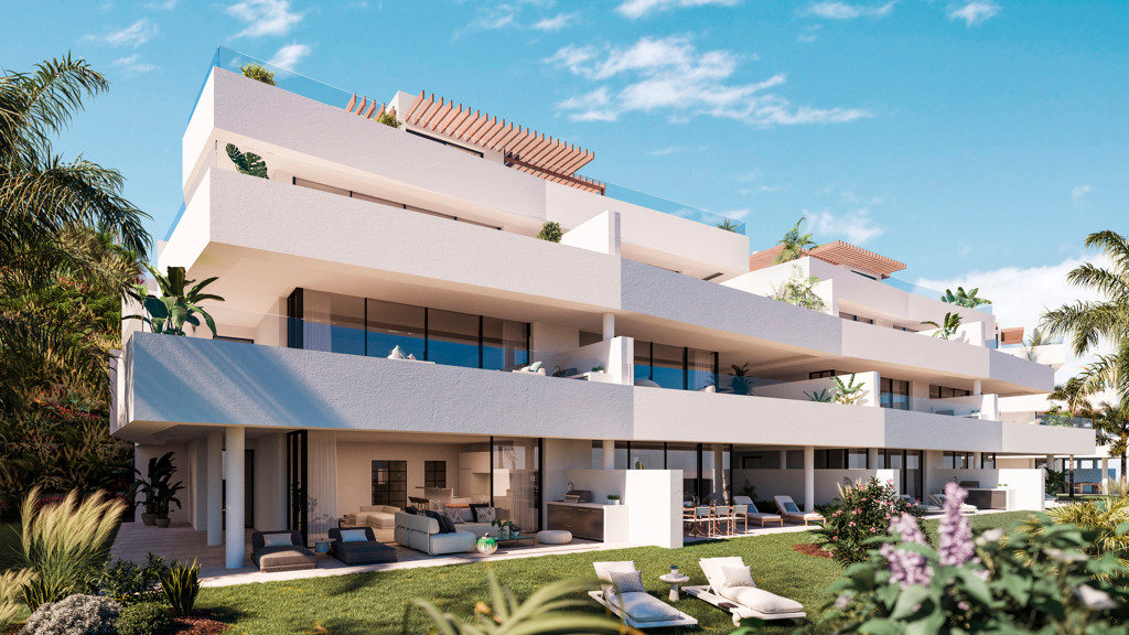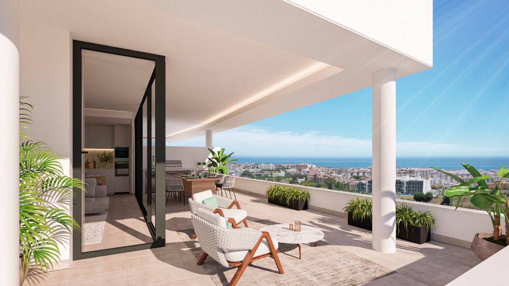 Apartment in Estepona Pueblo, 98 m2, 2 bedrooms, 2 bathrooms, terrace of 33 square meters, facing South and 1 garage.