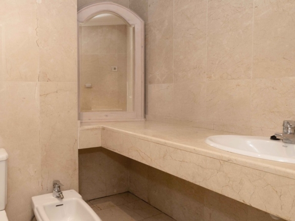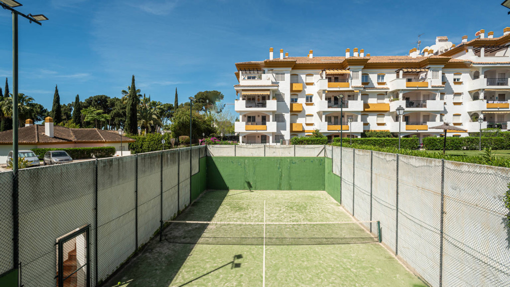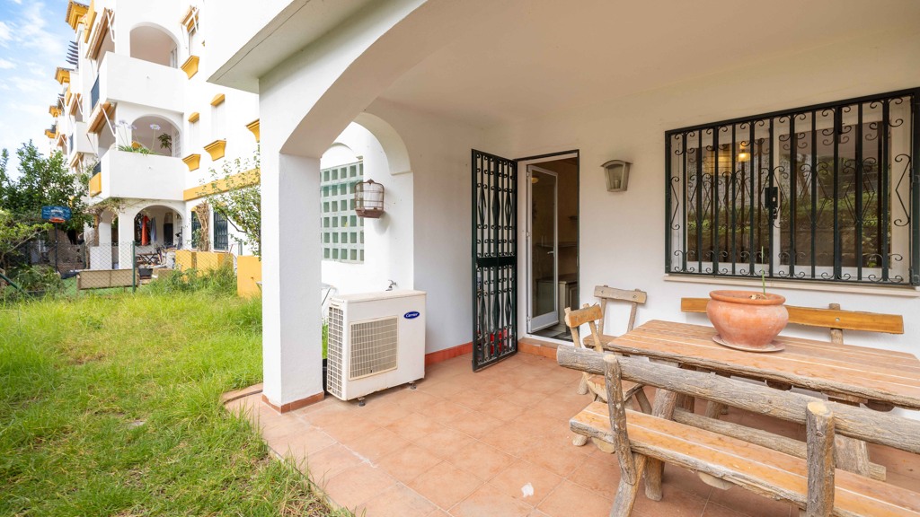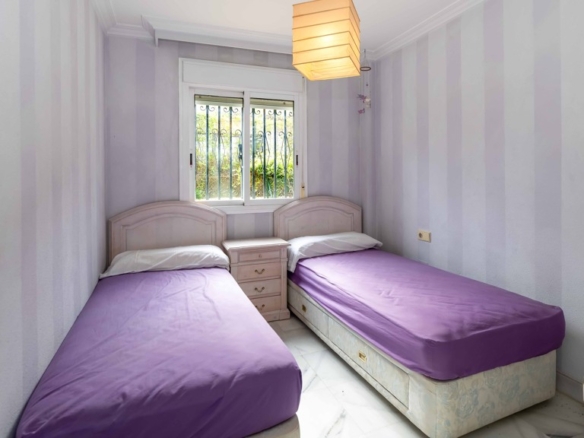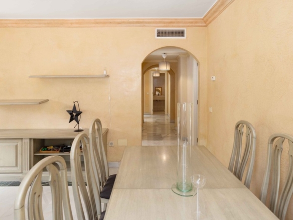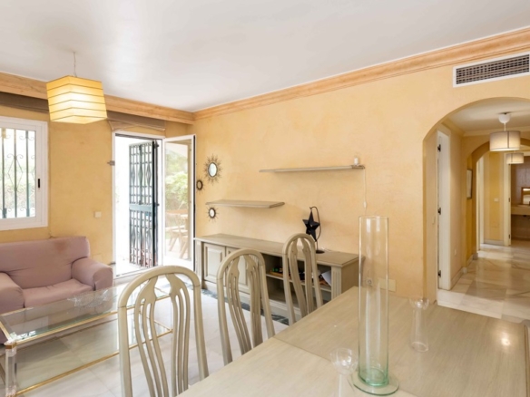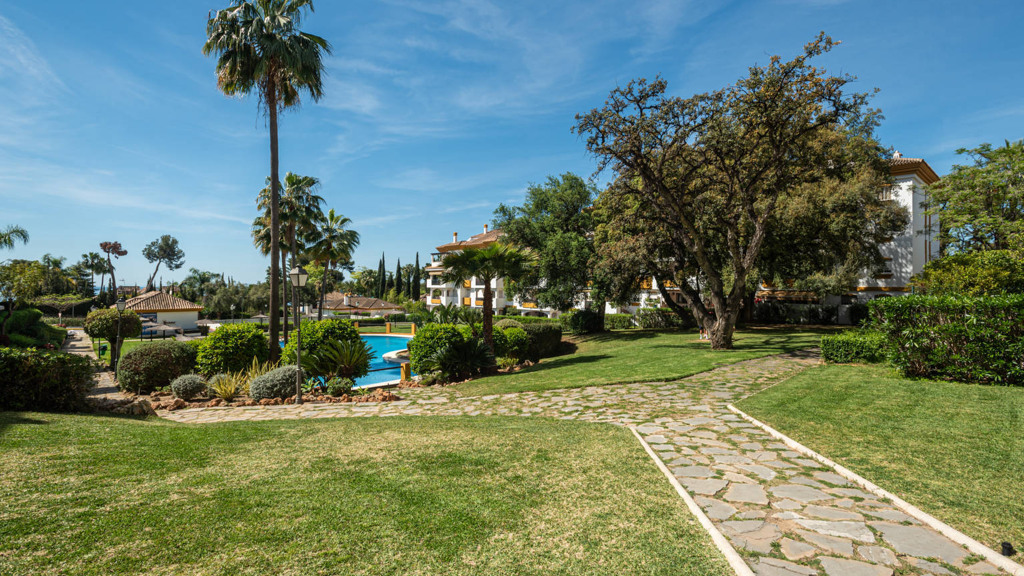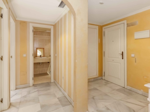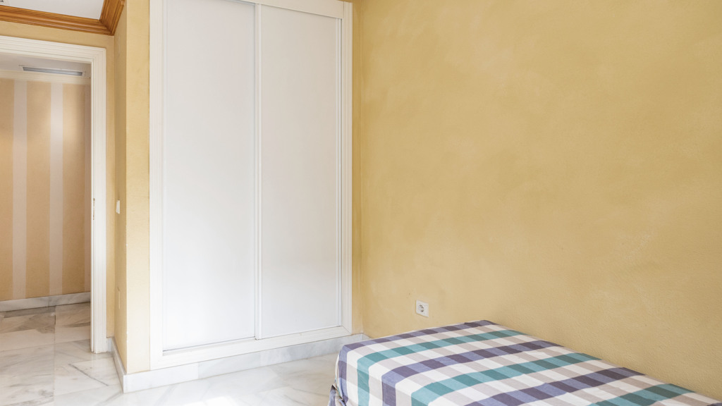 In the prestigious area of Marbella’s Golden Mile – Nagüeles, we find this ground floor apartment of 115 m2, designed to offer comfort and exclusivity in a privileged environment. This property has 3 spacious bedrooms, 2 bathrooms, a functional kitchen and a good sized independent living room, ideal to enjoy relaxing moments and family gatherings. It also has a private garden of 35 m2, a real luxury for those looking for an exclusive outdoor space. Additional features include hot and cold air conditioning, marble floors and a clothesline. The property is in a good state of conservation and thanks to its east orientation, this property offers a balanced and pleasant natural light throughout most of the day.