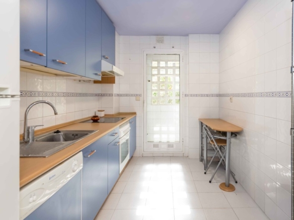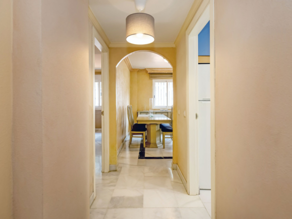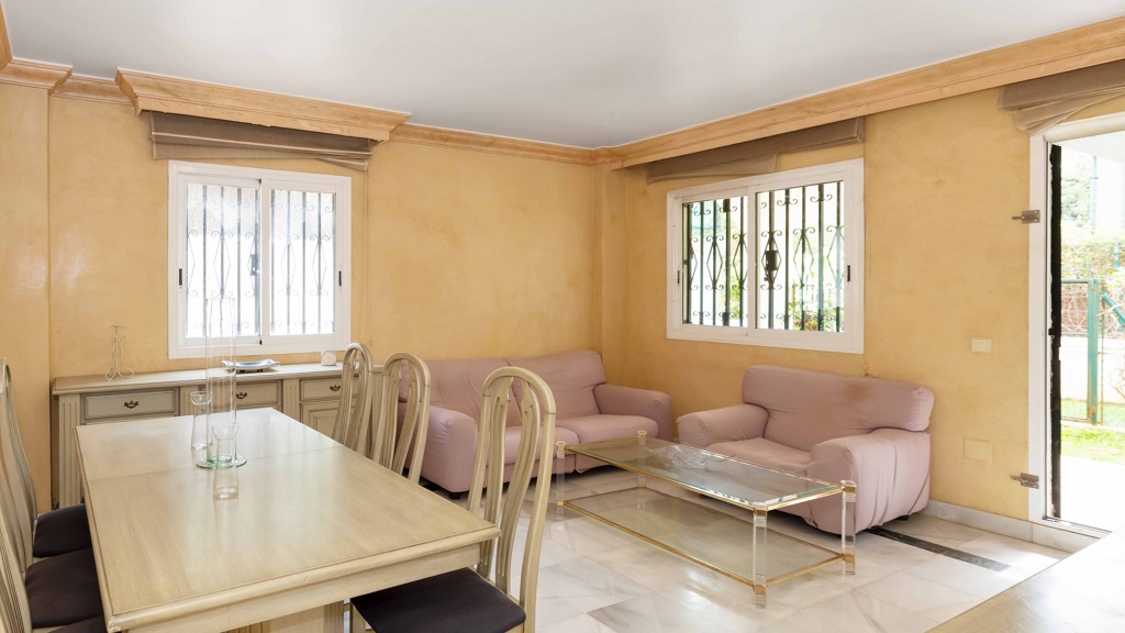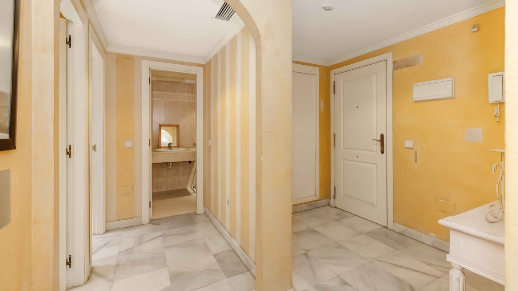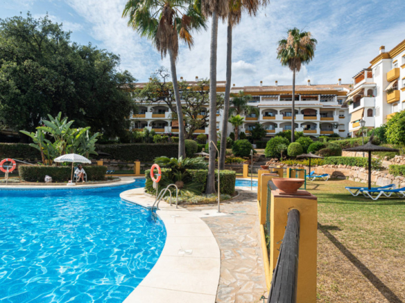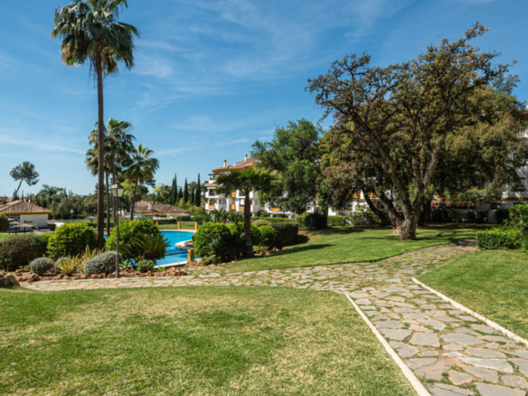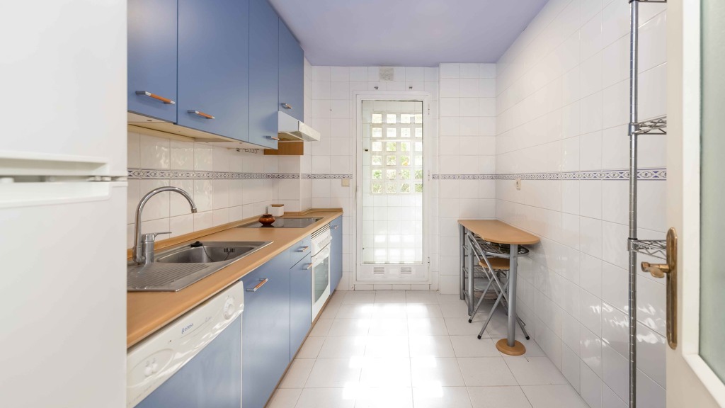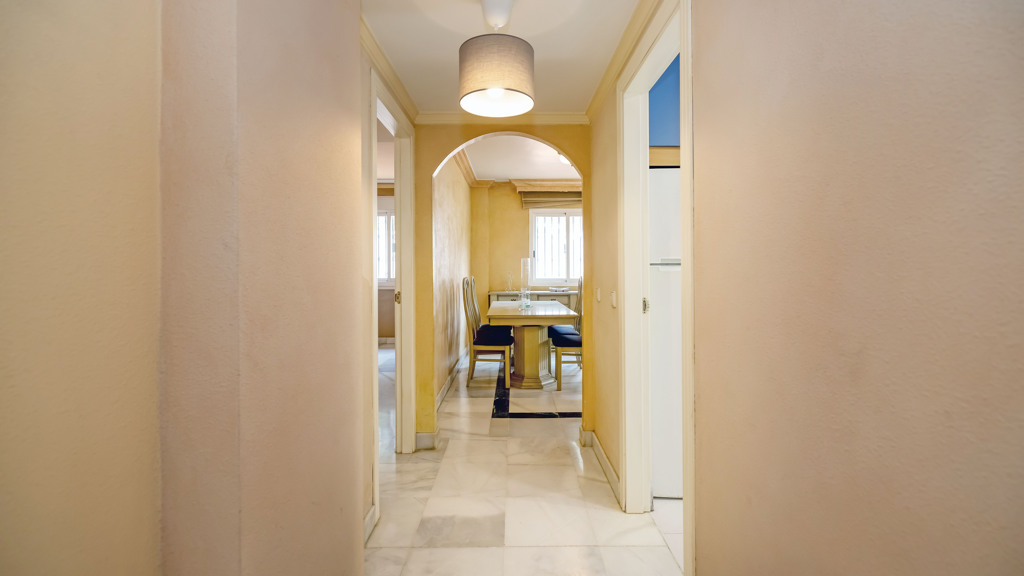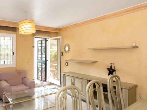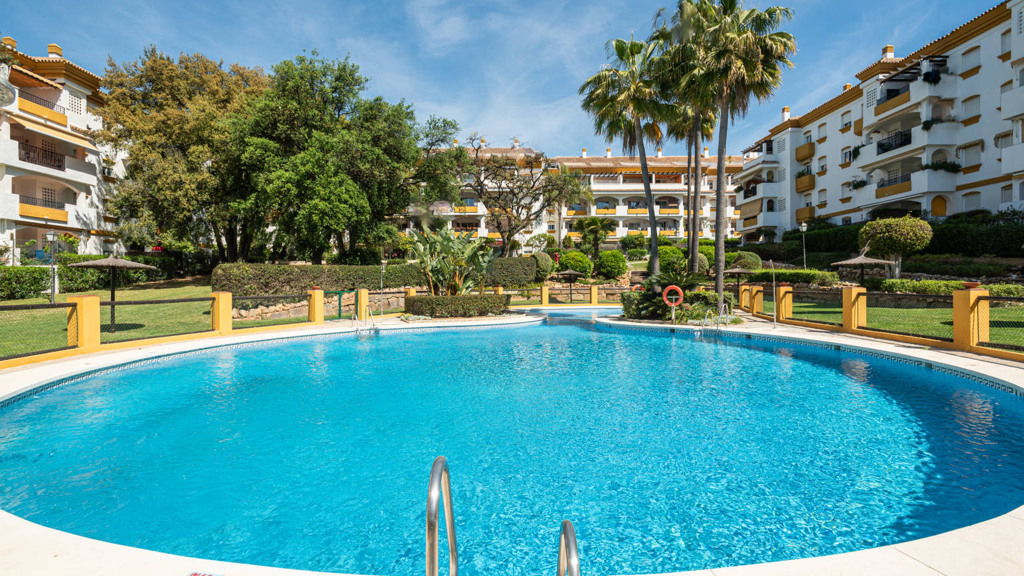 In the prestigious area of Marbella’s Golden Mile – Nagüeles, we find this ground floor apartment of 115 m2, designed to offer comfort and exclusivity in a privileged environment. This property has 3 spacious bedrooms, 2 bathrooms, a functional kitchen and a good sized independent living room, ideal to enjoy relaxing moments and family gatherings. It also has a private garden of 35 m2, a real luxury for those looking for an exclusive outdoor space. Additional features include hot and cold air conditioning, marble floors and a clothesline. The property is in a good state of conservation and thanks to its east orientation, this property offers a balanced and pleasant natural light throughout most of the day.