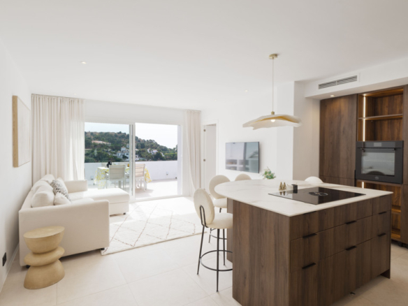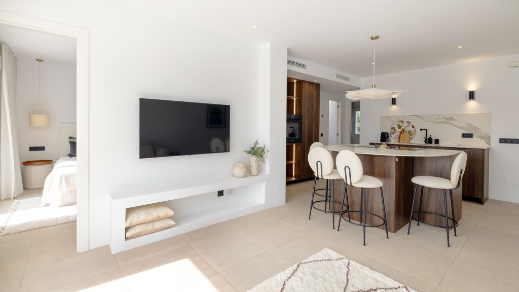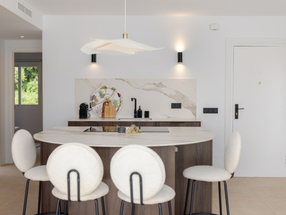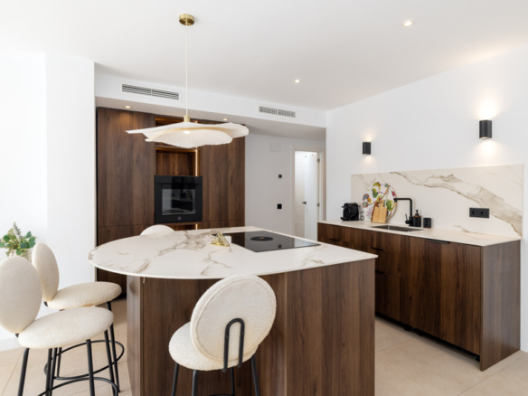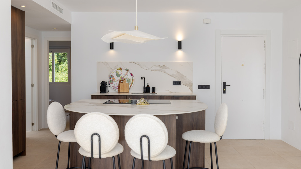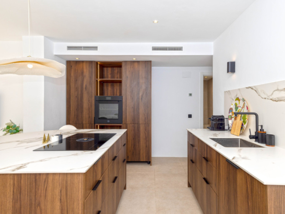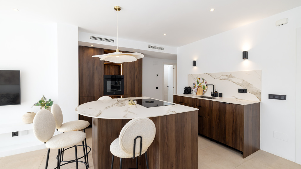 Finishes such as walnut wood carpentry and Italian Calacatta porcelain countertops bring both quality and warmth to the home.
