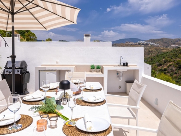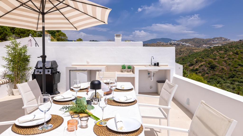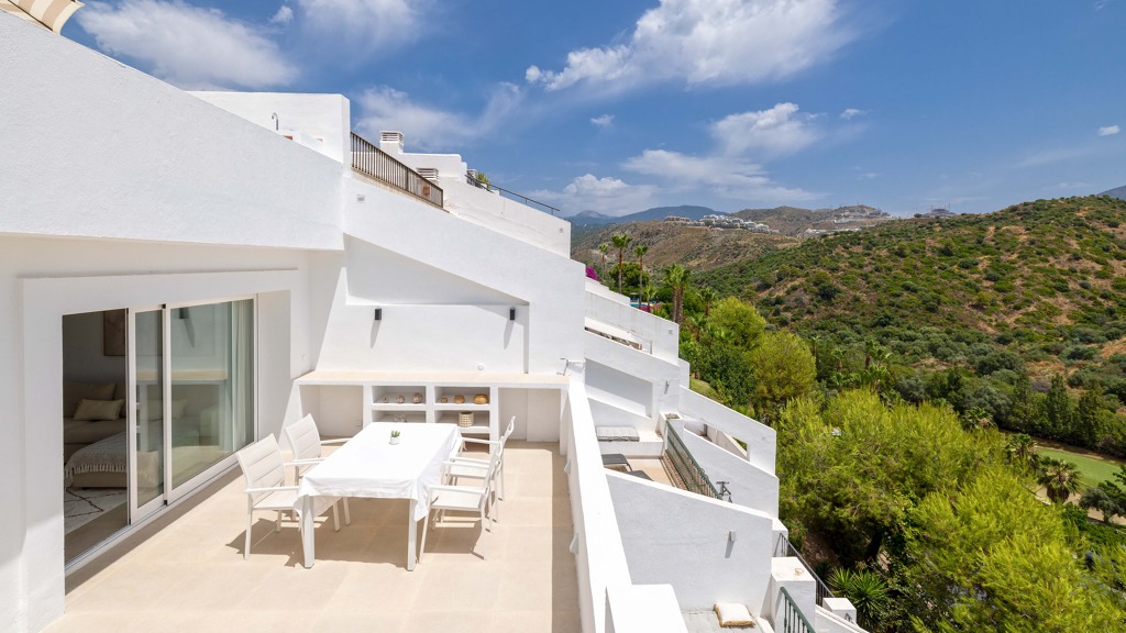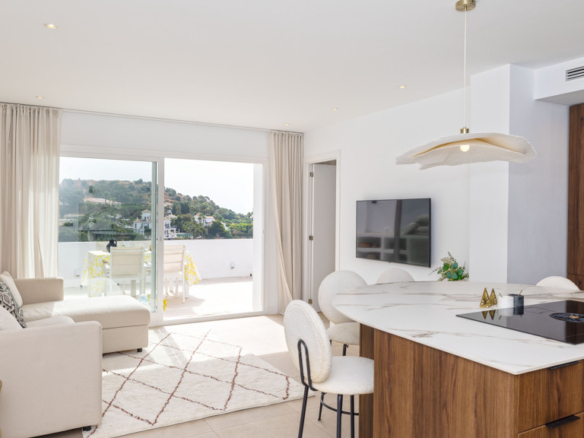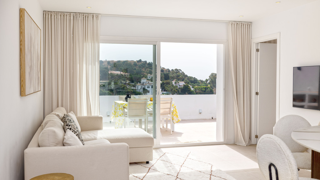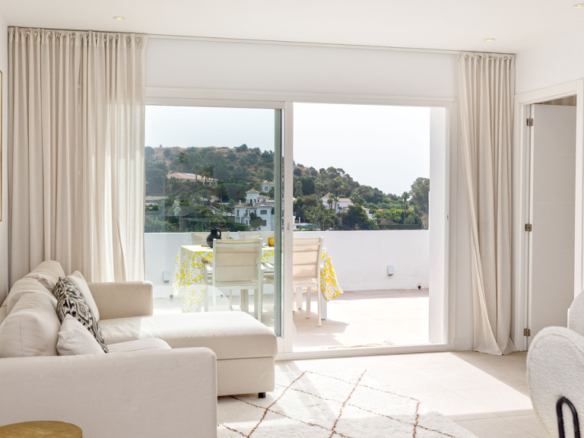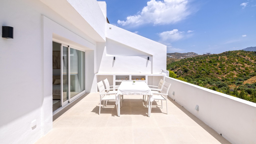 The property is characterized by an abundance of natural light, and from the living room, you step out onto the terrace with beautiful views of the mountains.