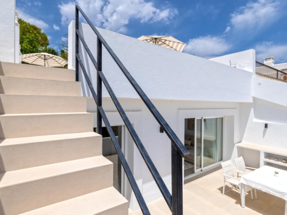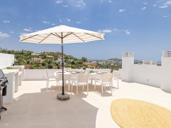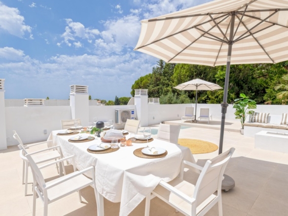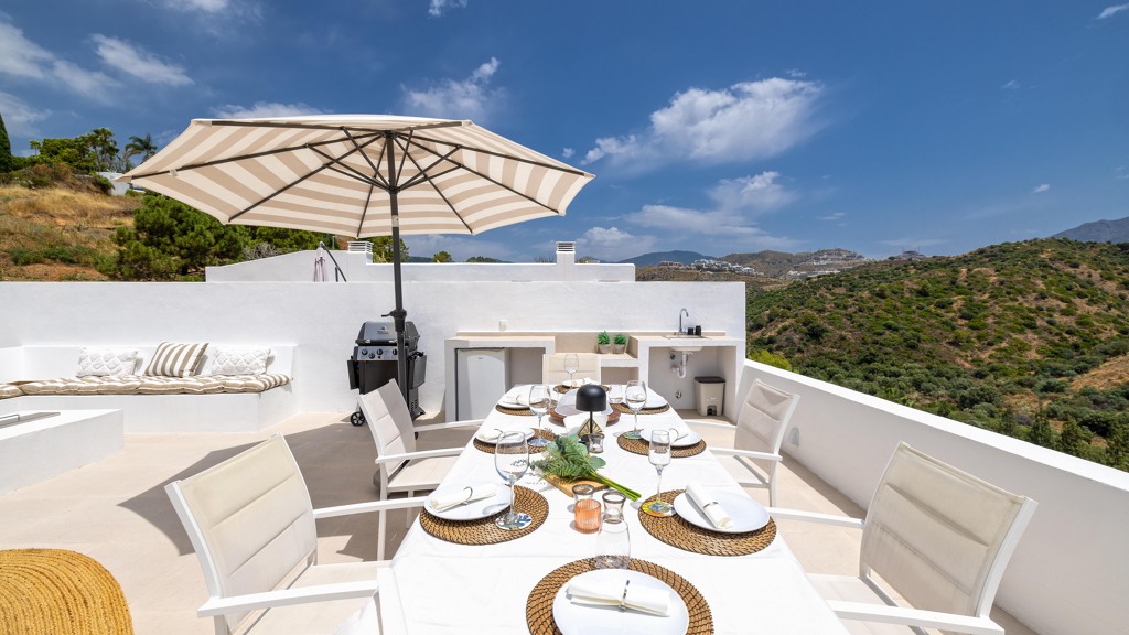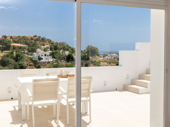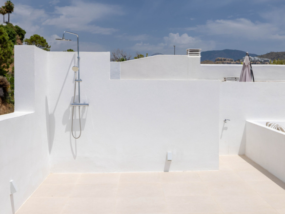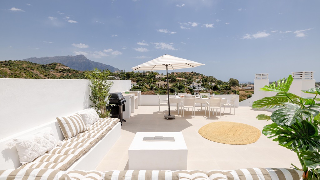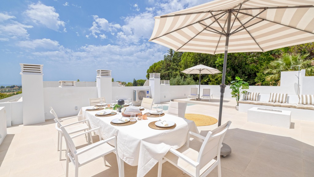 Heading up to the private rooftop, you’re greeted by panoramic sea views that captivate from the very first moment.