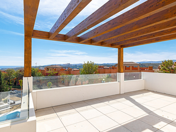 With three bedrooms and two spacious bathrooms, this flat offers a sense of freedom and light; a generous and comfortable space for its residents. The open-plan kitchen, with access to the terrace, is a place where functionality combines perfectly with aesthetics. It also has a laundry area that adds an extra layer of comfort and practicality. It has solar panels on the roof and aerotermia. What really sets this property apart is the abundant natural light that floods every corner, creating a feeling of spaciousness and serenity. Natural touches such as the large wooden pergola and the use of premium materials throughout the flat reflect a commitment to quality and attention to detail.