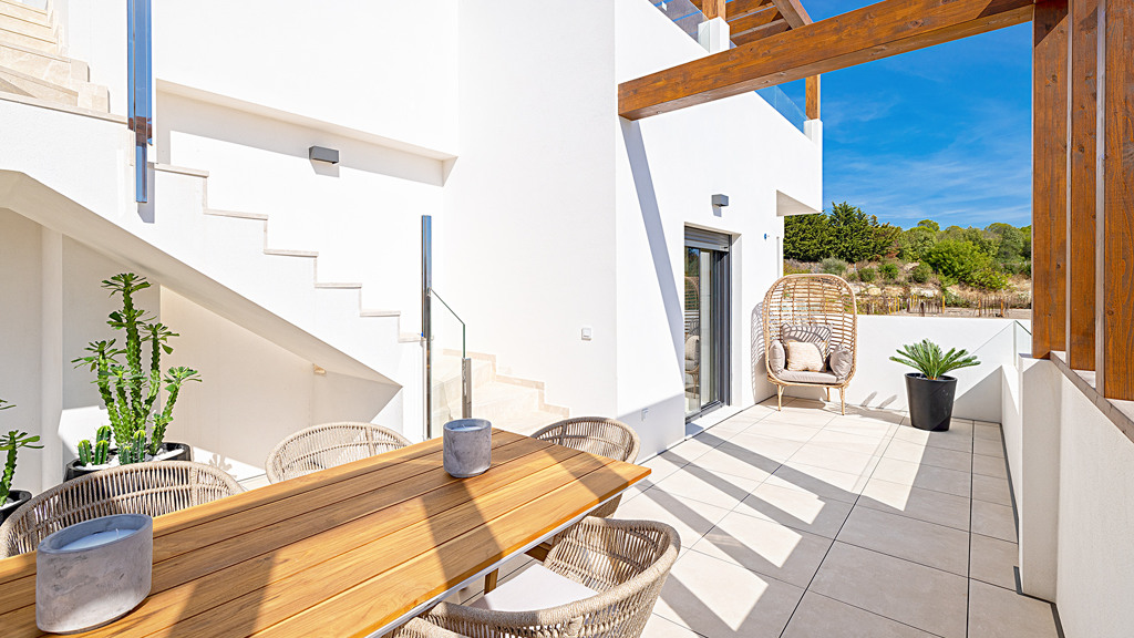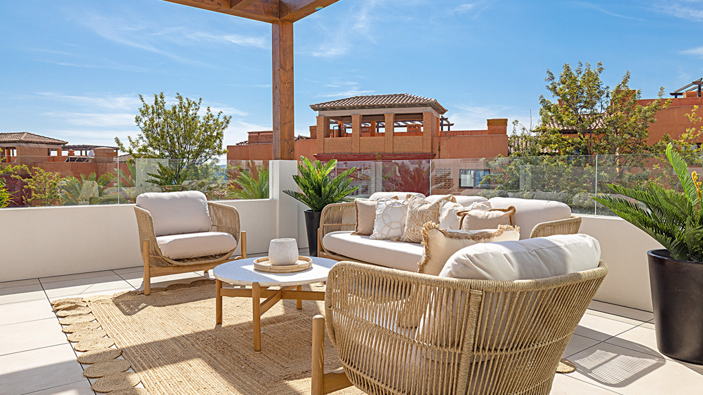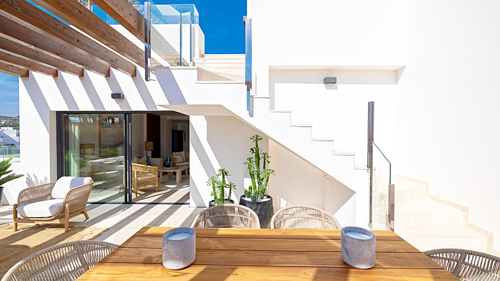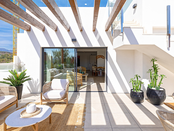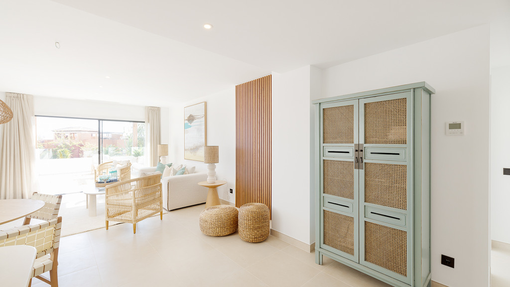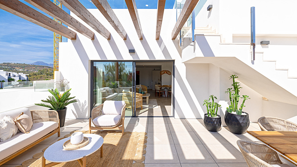In addition, the spacious terrace offers pleasant views and an outdoor space perfect for enjoying the Mediterranean climate, sunrises or sunsets. The privileged location of the property ensures that its residents are only minutes away from the beach and surrounded by renowned golf courses, making it a golf lover’s paradise.