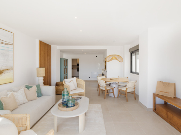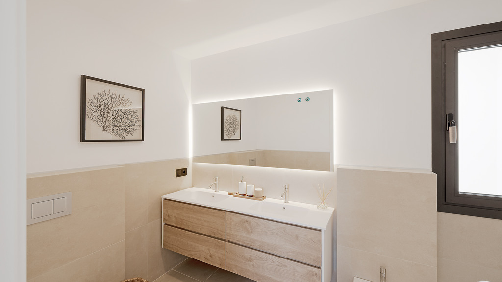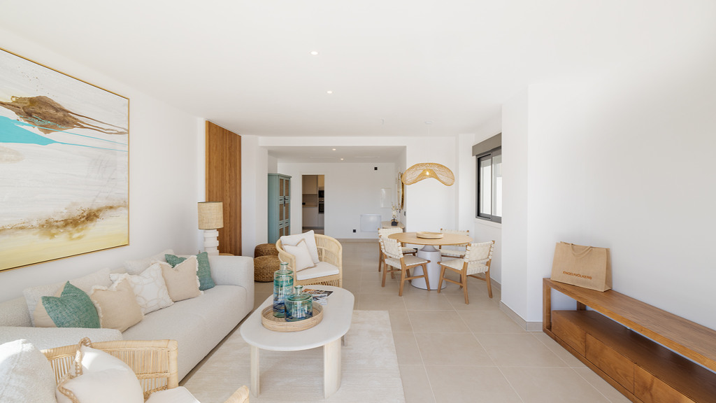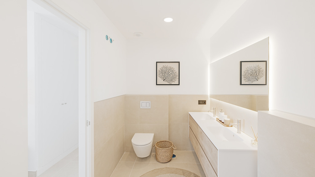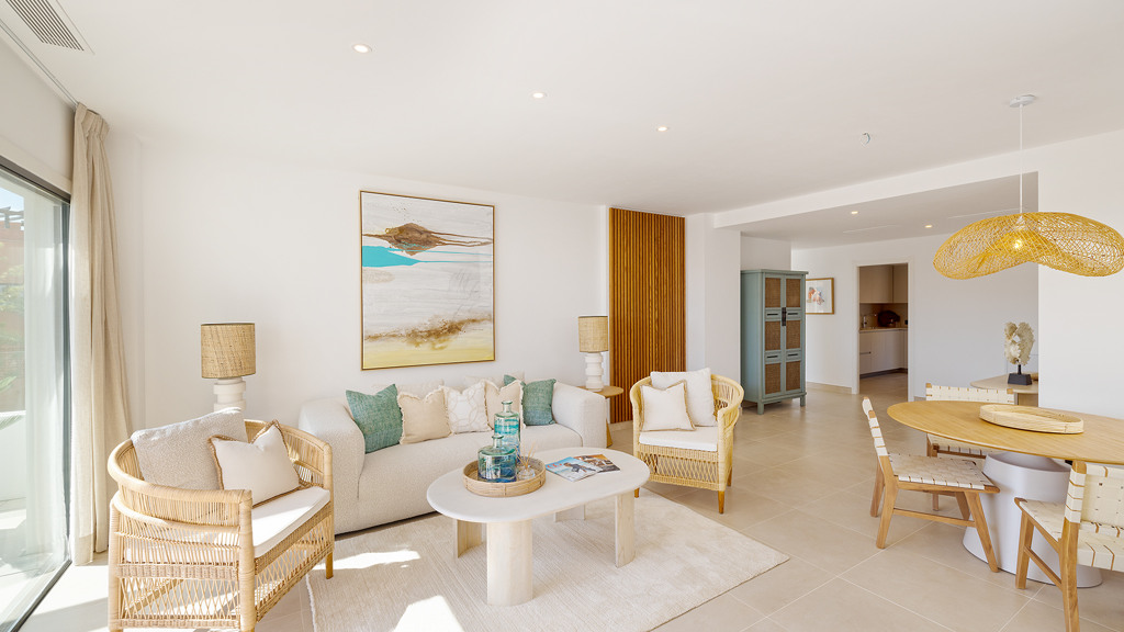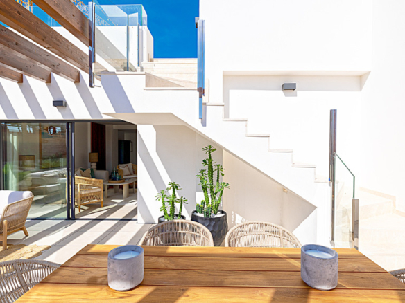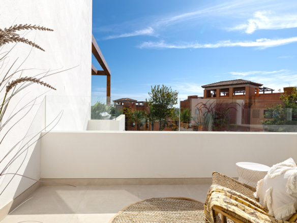 In addition, the spacious terrace offers pleasant views and an outdoor space perfect for enjoying the Mediterranean climate, sunrises or sunsets. The privileged location of the property ensures that its residents are only minutes away from the beach and surrounded by renowned golf courses, making it a golf lover’s paradise.