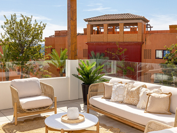 Wonderful penthouse-duplex in Nueva Nueva urbanization composed of five blocks, a total of 43 units. With landscaped green areas, a beautiful communal swimming pool; each block has independent access to the garage and underground storage rooms.