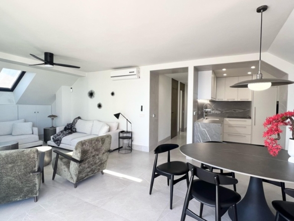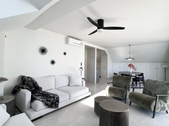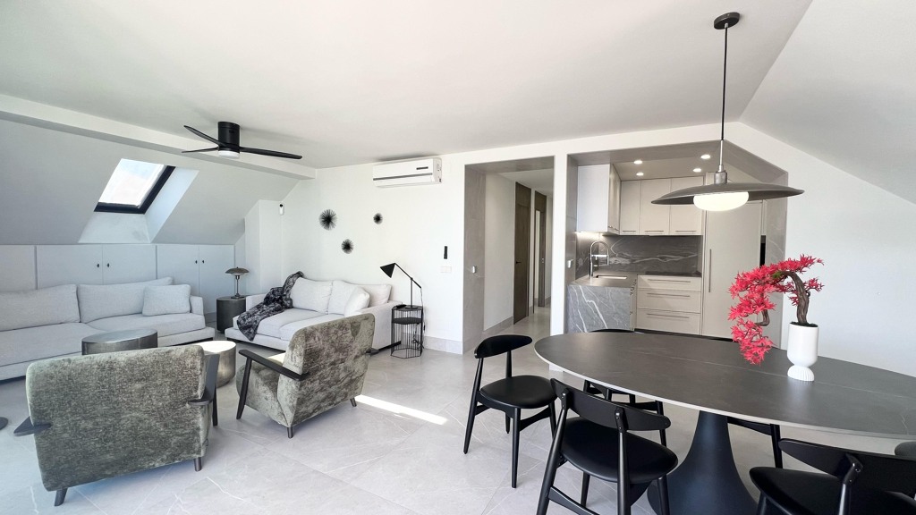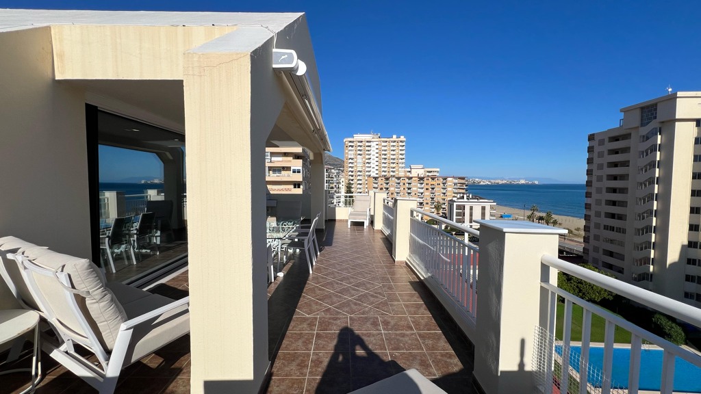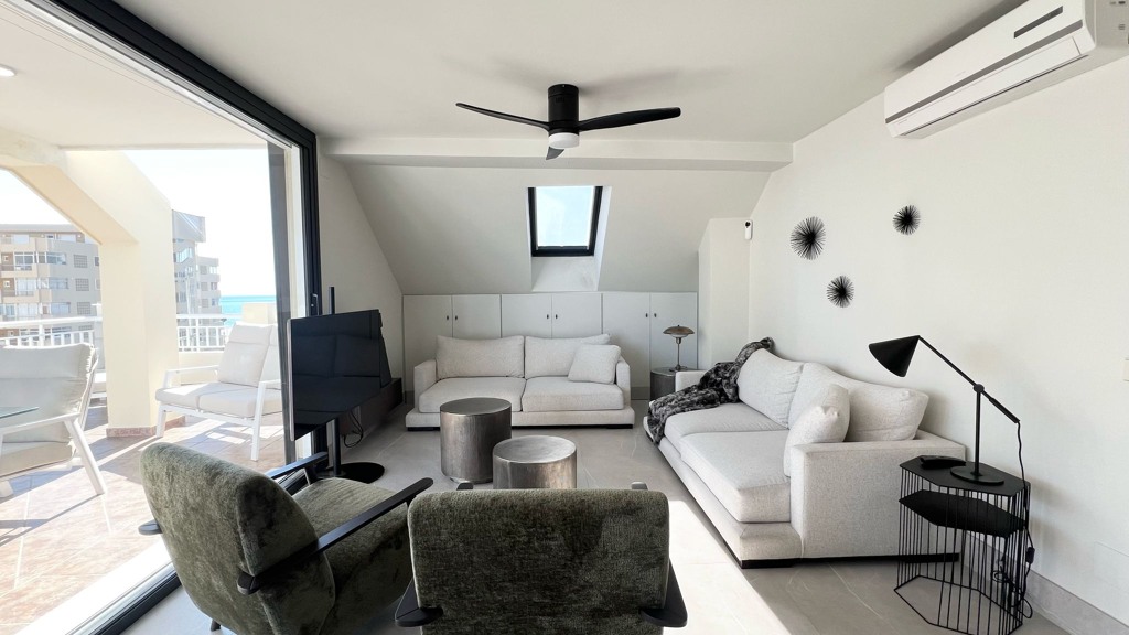 Stunning 4-bedroom penthouse in Los Boliches, Fuengirola—a true gem with breathtaking sea views. Located in an exclusive residential complex, this penthouse has been fully renovated with a contemporary design and high-quality finishes.