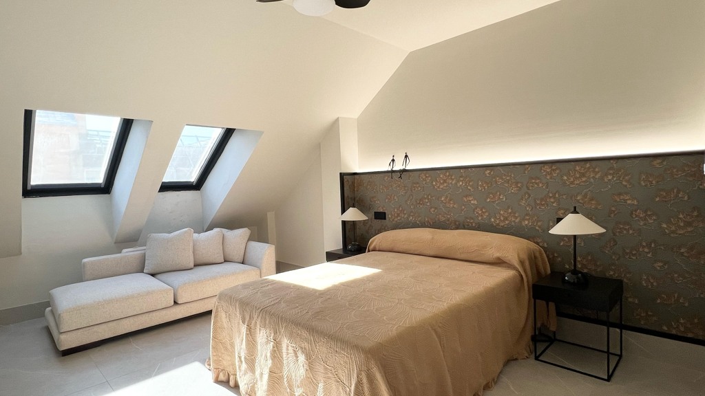 This penthouse features four bedrooms, all with ample storage space, and three modern, functional bathrooms. The kitchen is fully equipped with brand-new appliances and has been designed with practicality in mind.