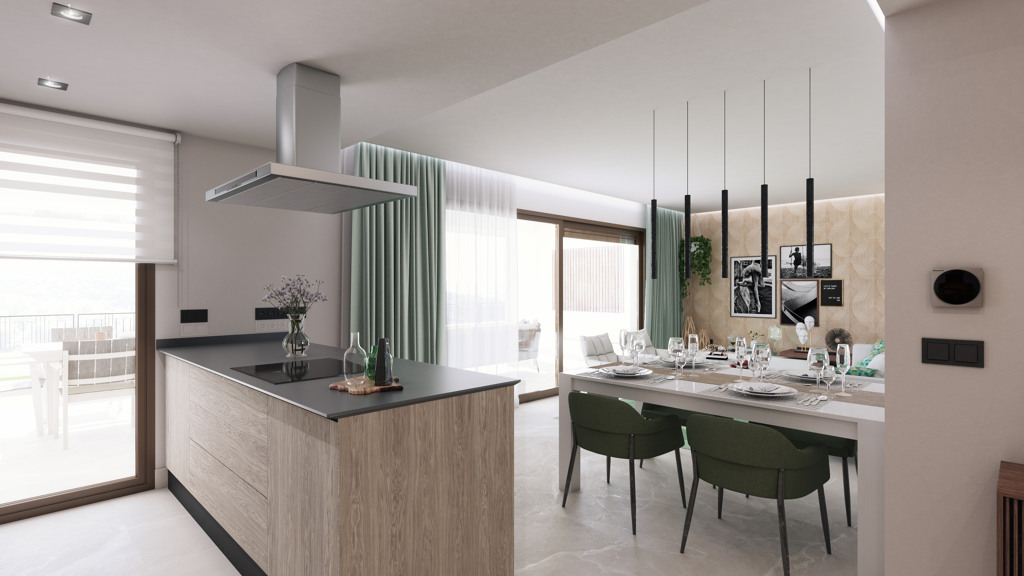 The project is made up of 4 blocks of only three heights of houses in a contemporary “open plan” format but with a rustic aesthetic that integrates into the natural environment that surrounds it. Apartments with 2 and 3 bedrooms and penthouses with a solarium with large terraces, a community pool with gardens of native plants.