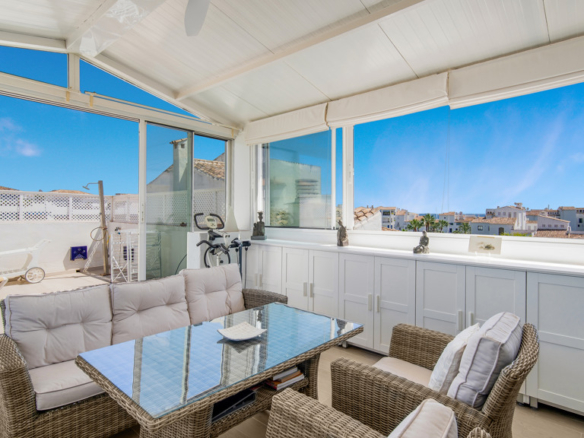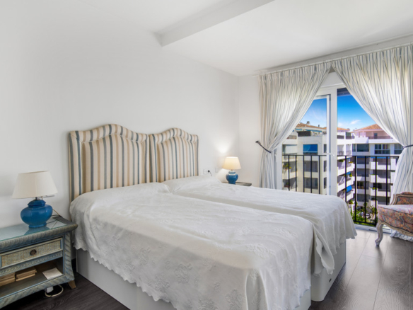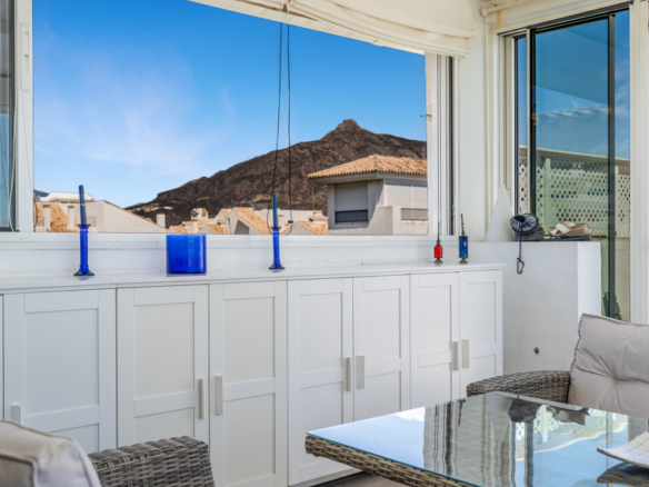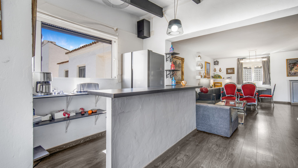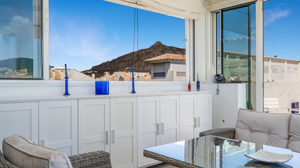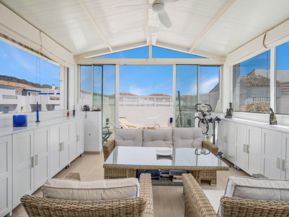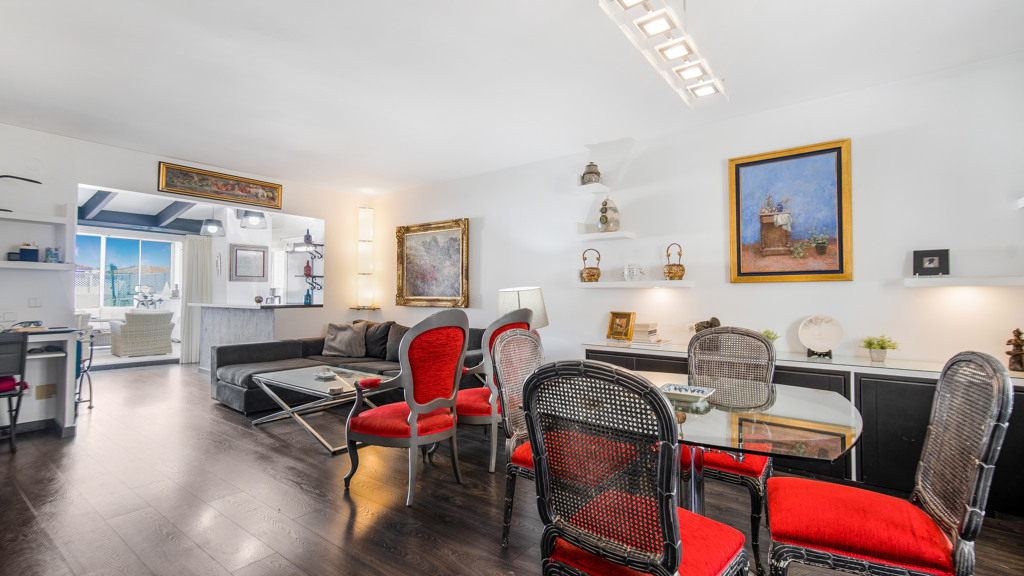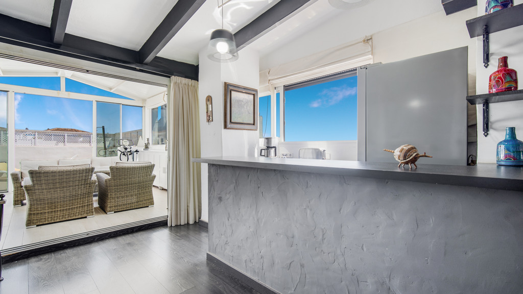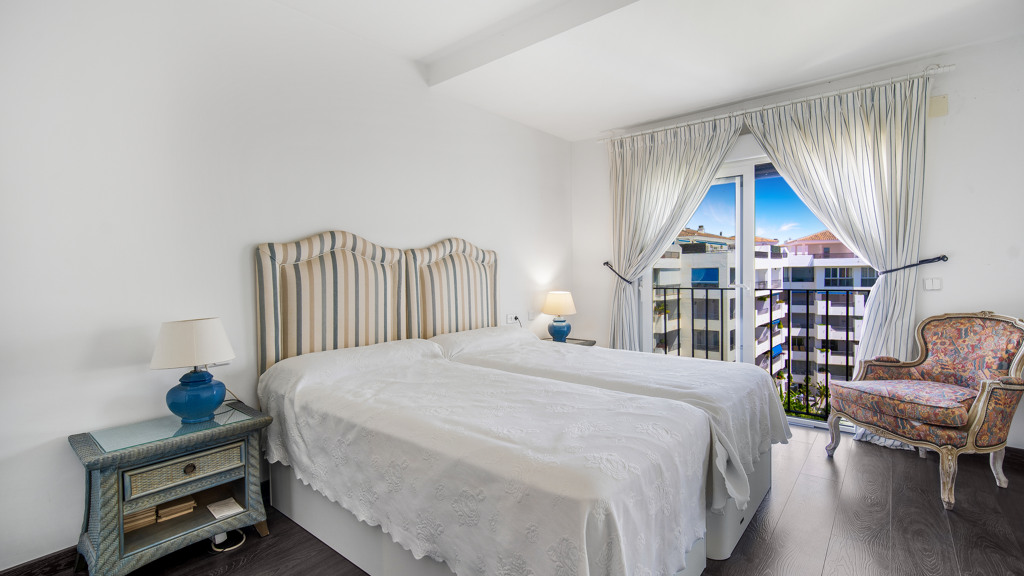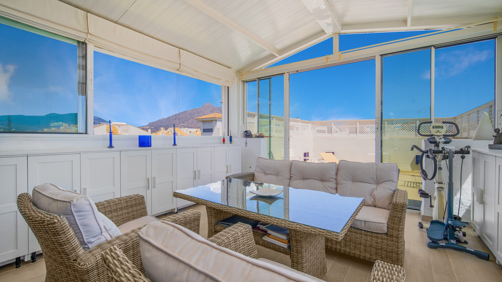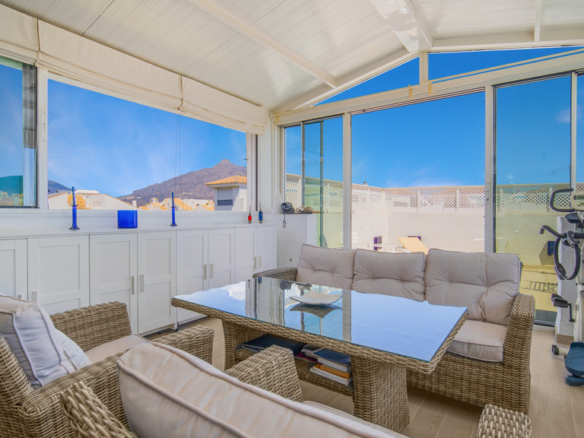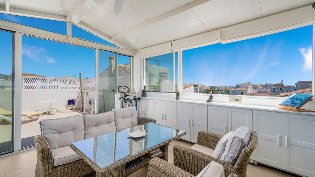 Stunning penthouse in the heart of Puerto Banús, just steps from the beach and surrounded by luxury boutiques, gourmet restaurants, and vibrant nightlife. The property features three bedrooms (one converted into a luxury walk-in wardrobe), two bathrooms, a stylish open-plan living and dining room with direct terrace access, and a fully equipped kitchen with top-of-the-line appliances.