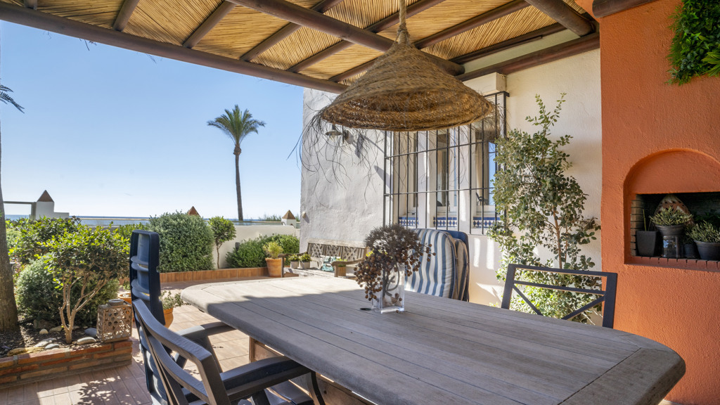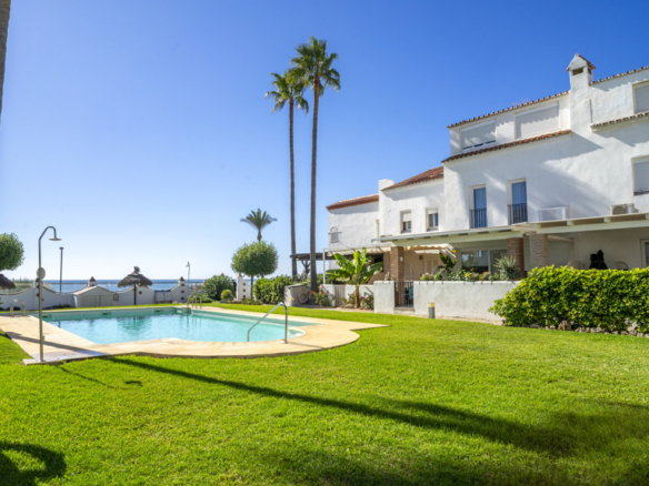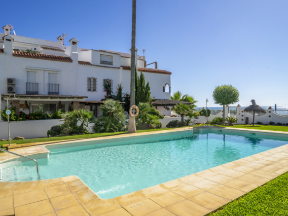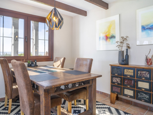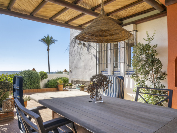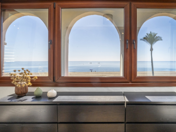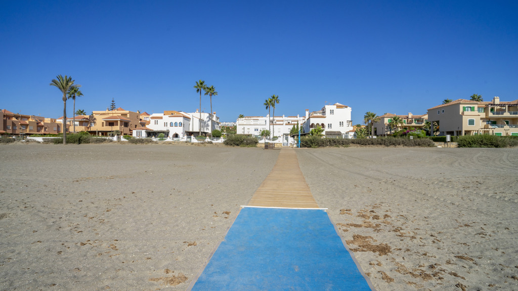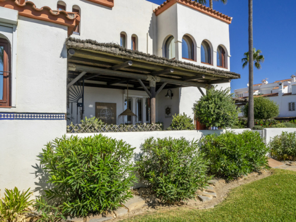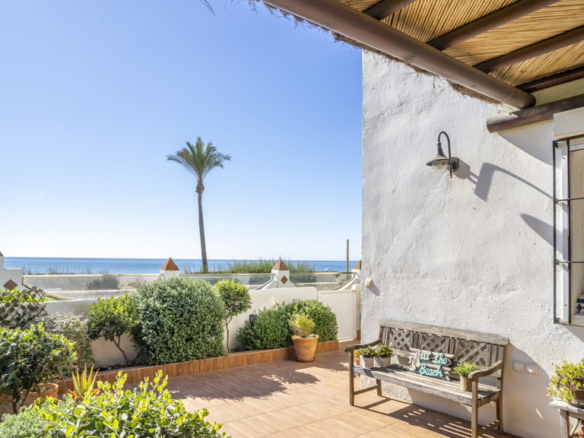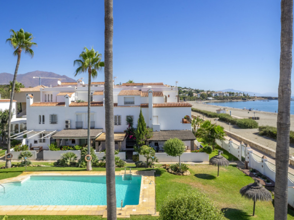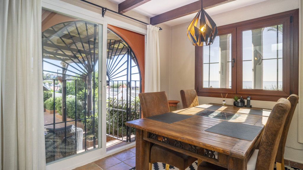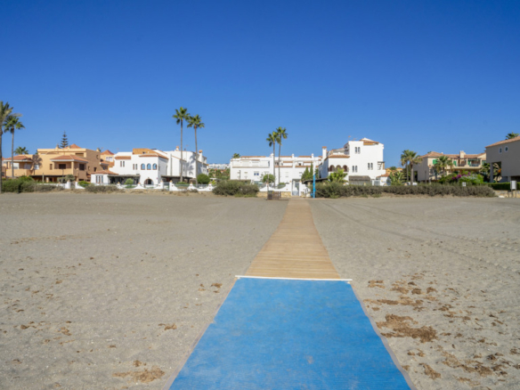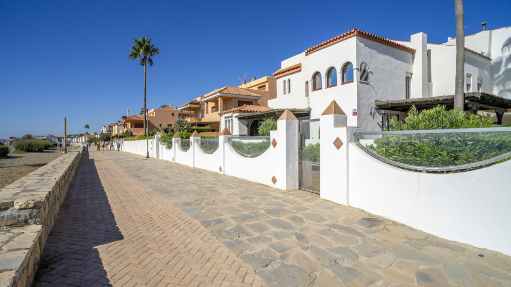 This magnificent property is located in the exclusive area of Casares Playa, in Malaga. It is a luxury semi-detached villa, located on the beachfront, which gives it spectacular views of the sea. It is also close to golf courses, marinas and shops, making it an ideal place to enjoy a holiday or to live all year round. Located in Casares Costa, within a quiet and exclusive complex, with green areas, communal swimming pool and direct access to the wonderful fine sandy beaches and its extensive promenade that connects the entire Costa del Sol, where you will find a wide variety of bars, beach bars and leisure areas. Located between the port of Estepona and the port of La Duquesa, both just 5 minutes away on foot or by car. The property is in perfect condition, on a corner, and stands out for its large size. The villa has a south orientation, which guarantees an excellent natural light all day long. Its state of conservation is excellent, as it has been carefully maintained and cared for over the years. Furthermore, it is equipped with all modern comforts such as air conditioning, heating and double glazed windows.