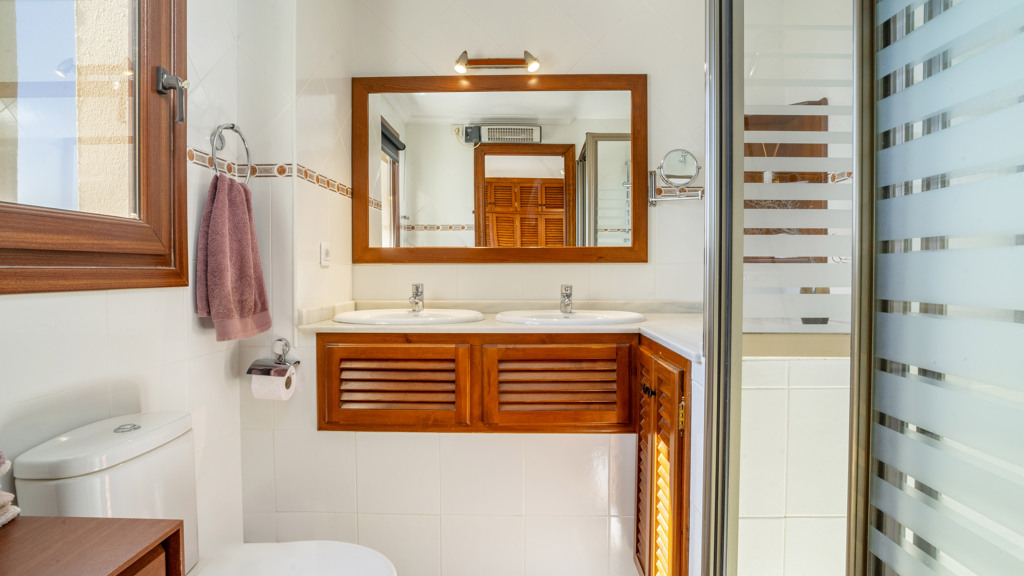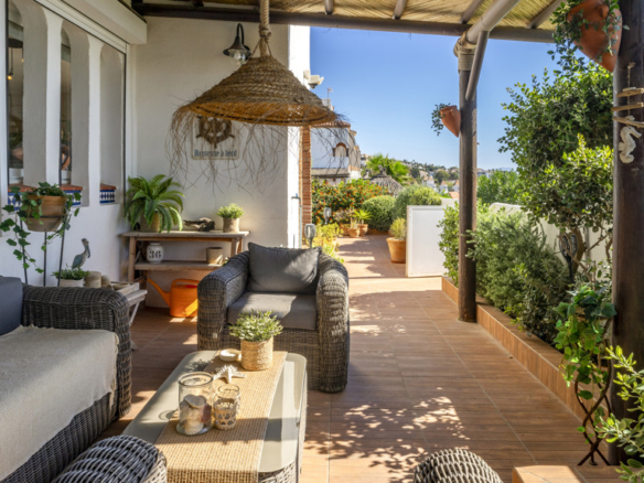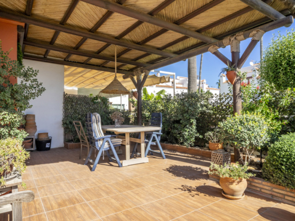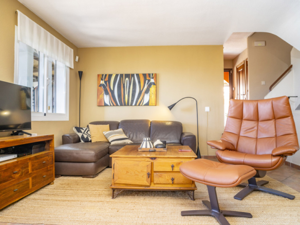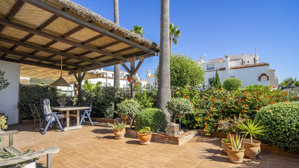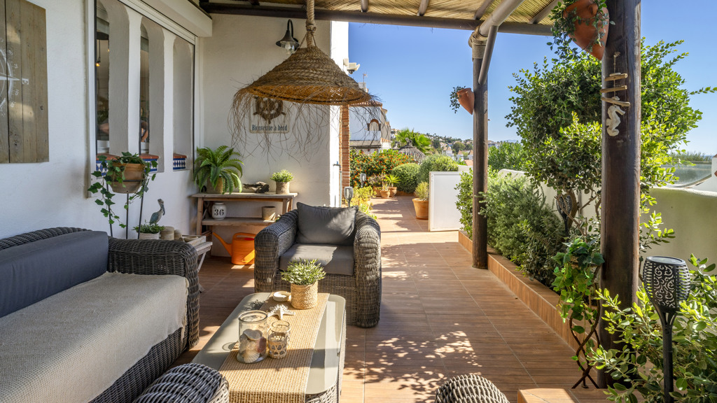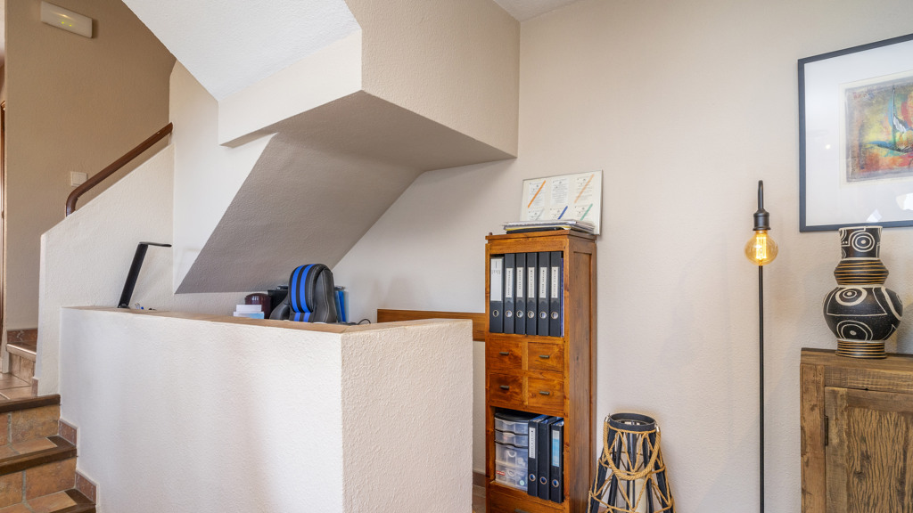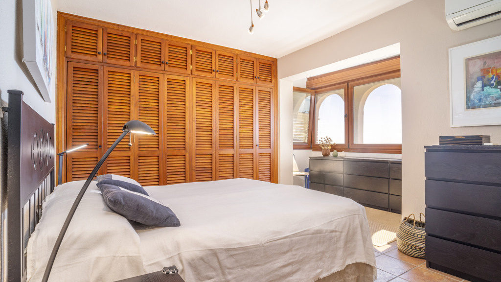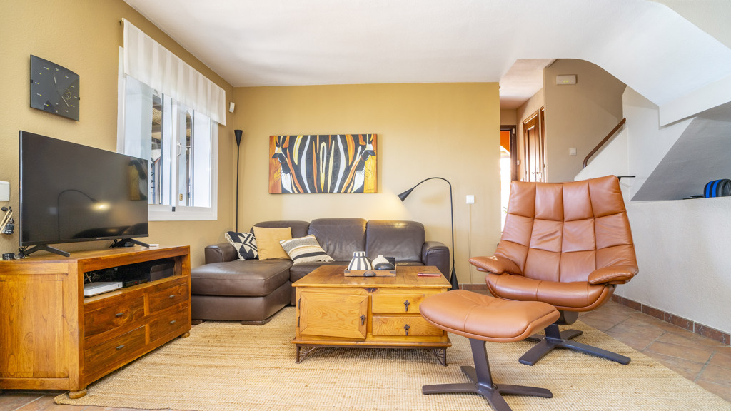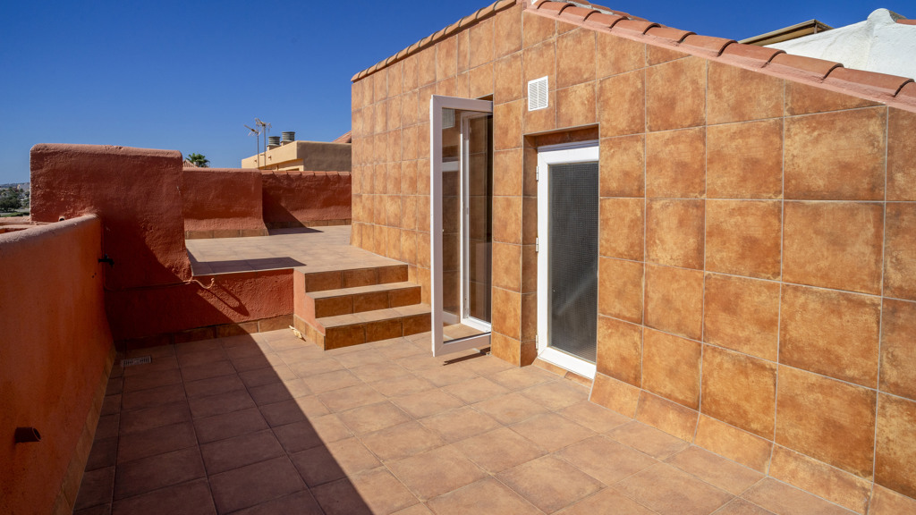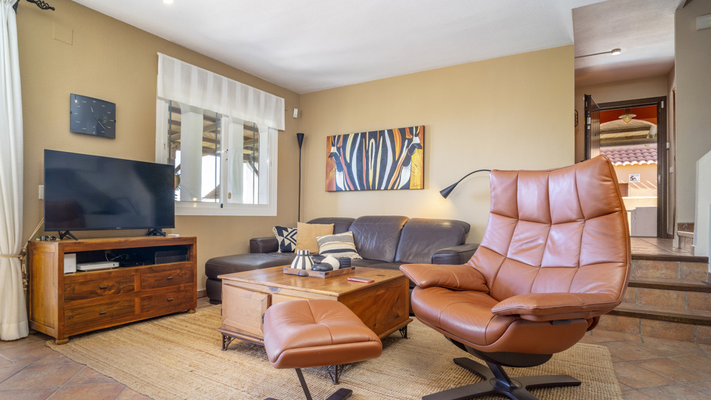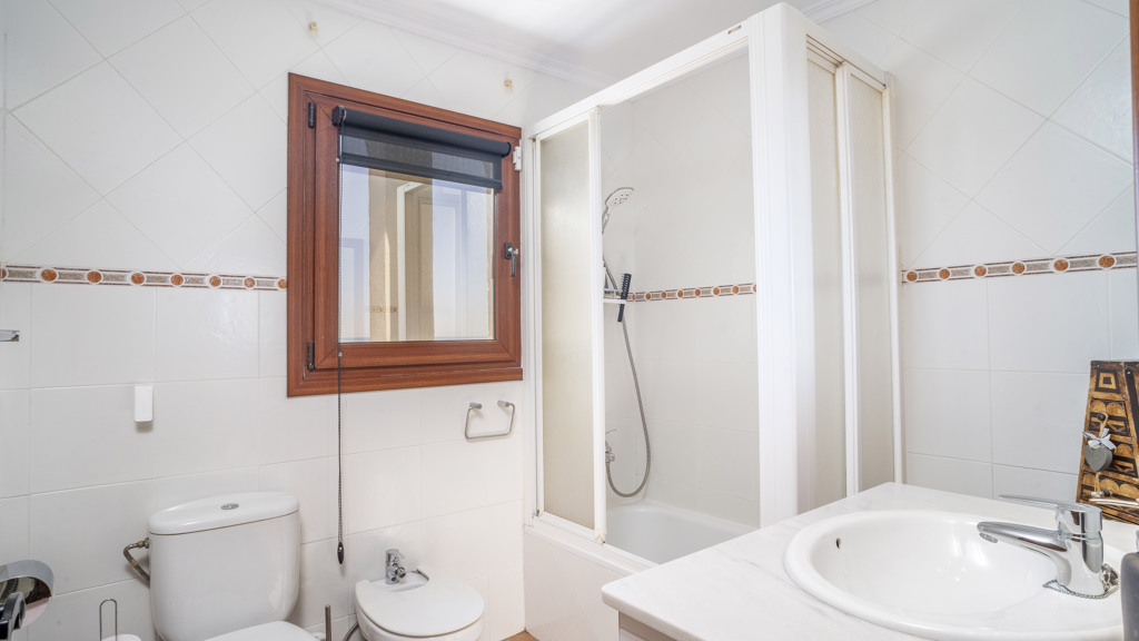 This superb villa offers ample interior space. It has three bedrooms, of which the master bedroom has an en-suite bathroom, providing greater privacy and comfort. In addition, there are fitted wardrobes in all rooms, maximising storage space. The villa also boasts a spacious covered terrace, ideal for al fresco dining and enjoying the stunning sea views. In addition, there is a rooftop solarium, where you can sunbathe and relax in total privacy. There is also a storage room, ideal for storing personal belongings or sports equipment. The landscaped communal garden is another attraction of this property. It has been carefully tended and offers a peaceful and relaxing environment. In addition, the urbanisation has a communal swimming pool, perfect for cooling off during the summer months.