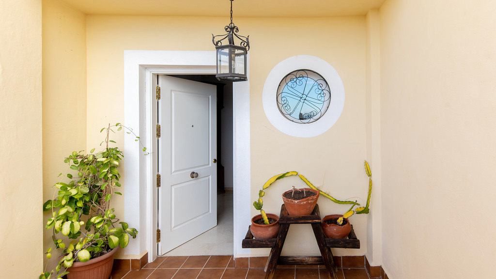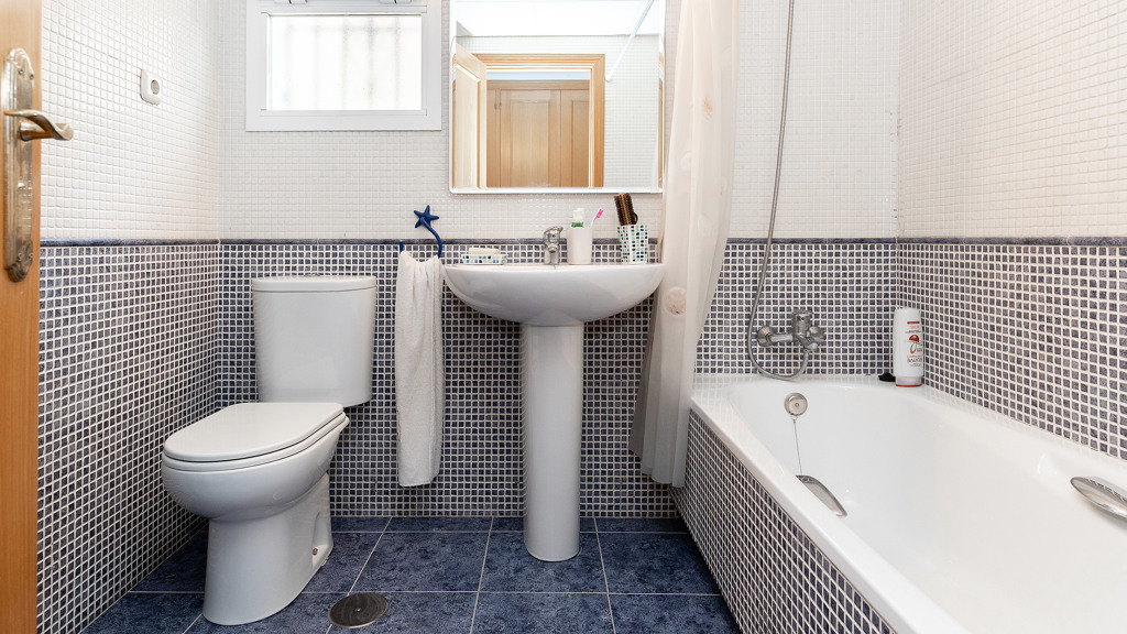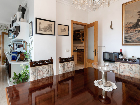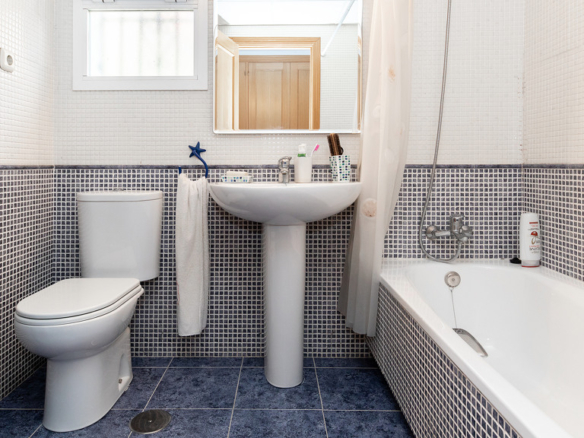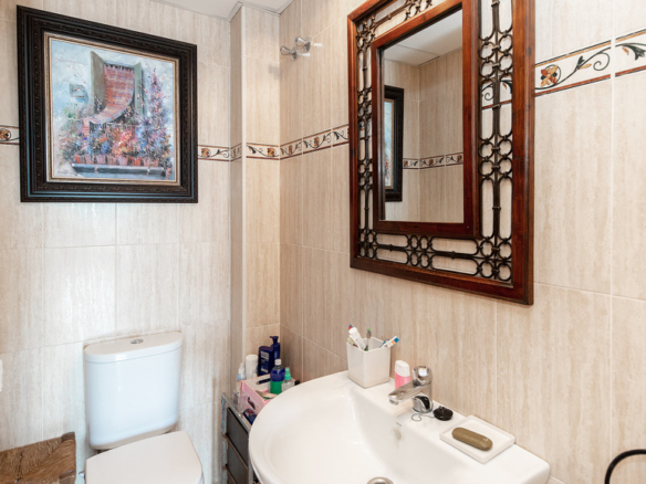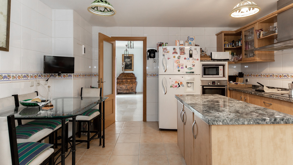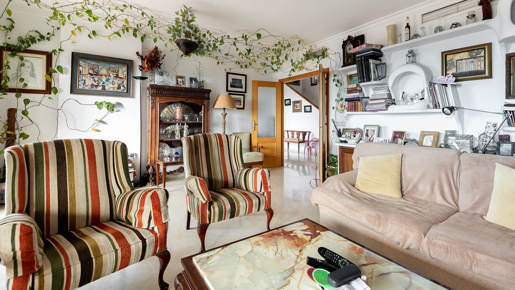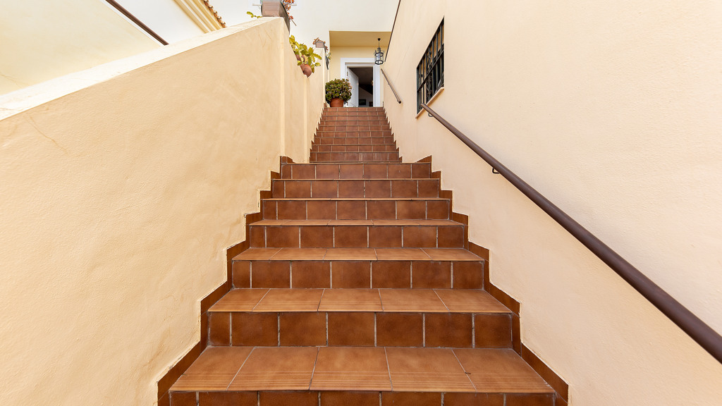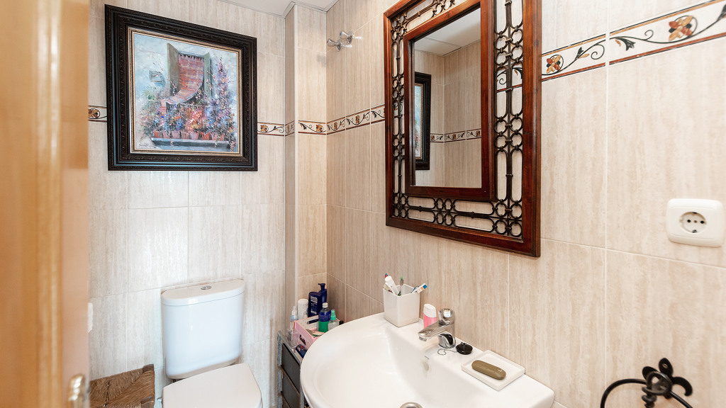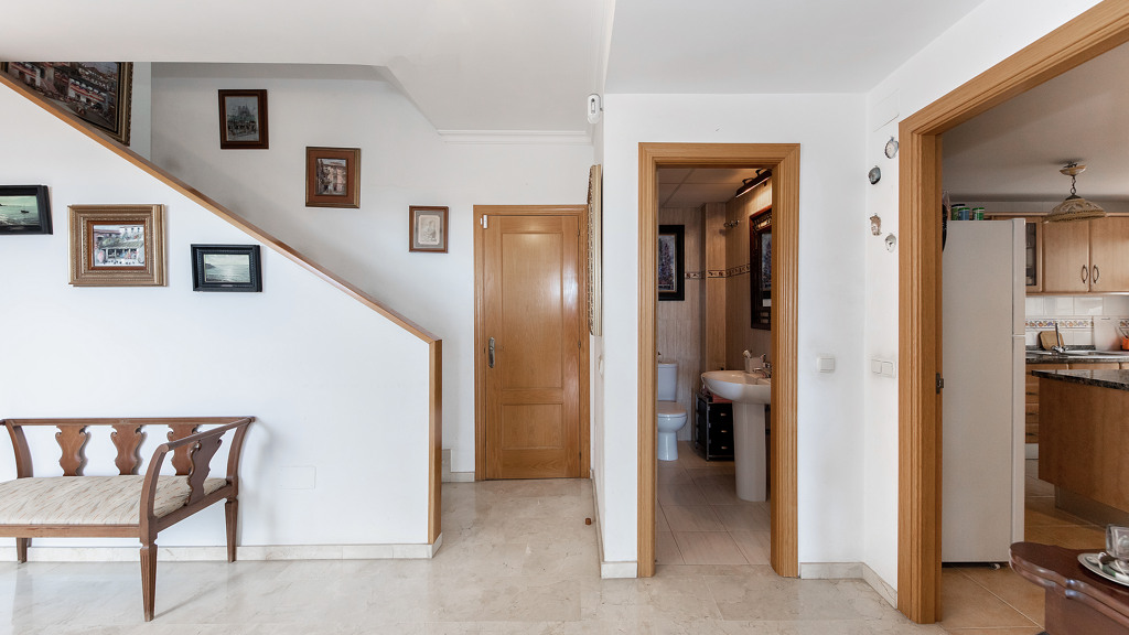 On the first floor we finde the bedrooms, they are two and of great size, one of them with dressing room and bathroom en suite. There is also an additional bathroom. The corridor has been used to make the most of the space by installing built-in wardrobes. From this floor there is access to the communal areas of the urbanization, where we find gardens for children to play and a communal swimming pool with good views.