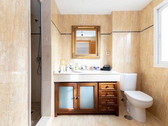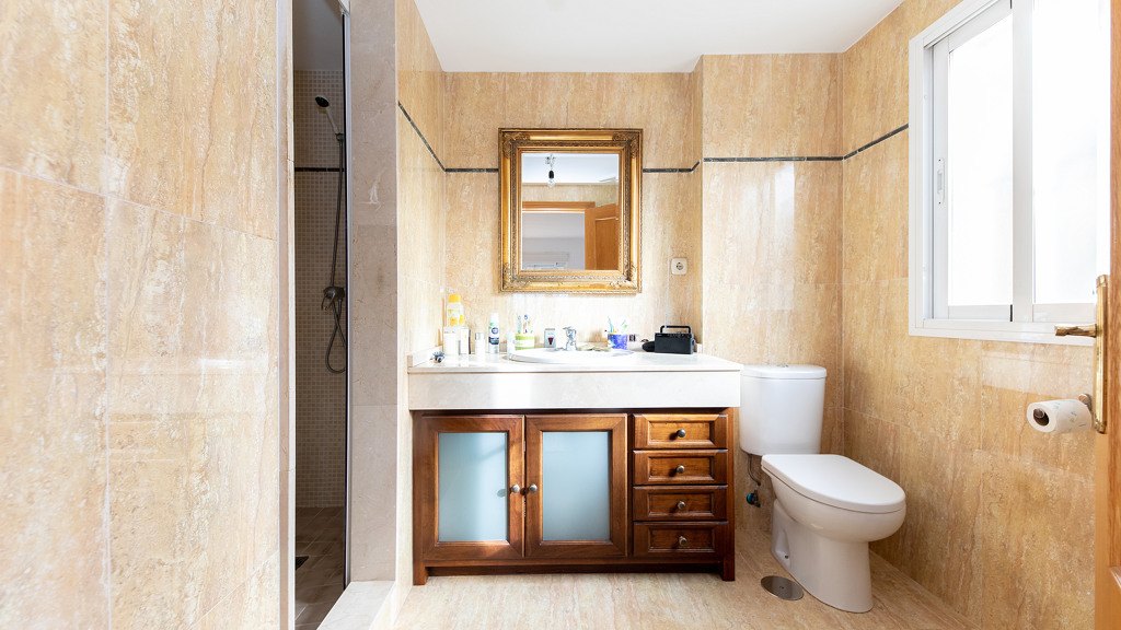 On the first floor we find a toilet, a complete kitchen of 16 square meters, which is independent and has an outside terrace with laundry and storage room. Adjoining the kitchen is a dining room, a beautiful living room with fireplace and a 76 square metre terrace ideal for taking advantage of the great climate that Malaga offers and excellent sea views.