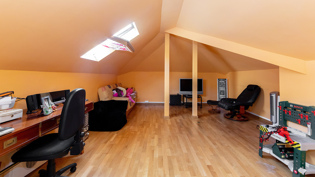 Above the first floor we have the attic, which great ventilation with a window. It has the pre-installation to put a bathroom in this room. This room is of a large size, ideal for a playroom, or the perfect room for young people.