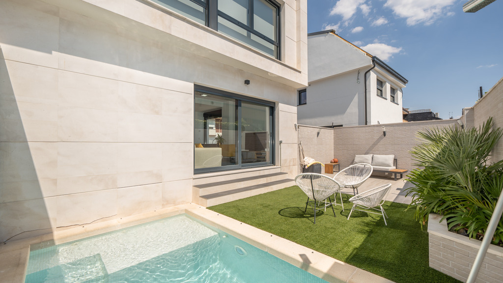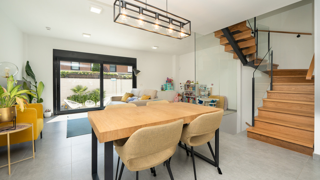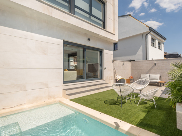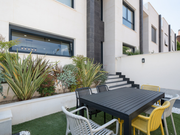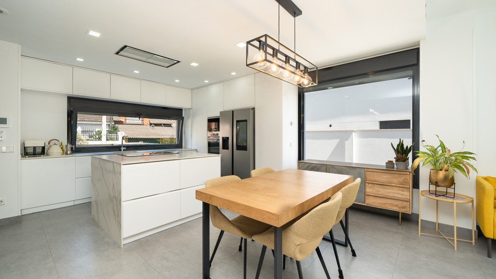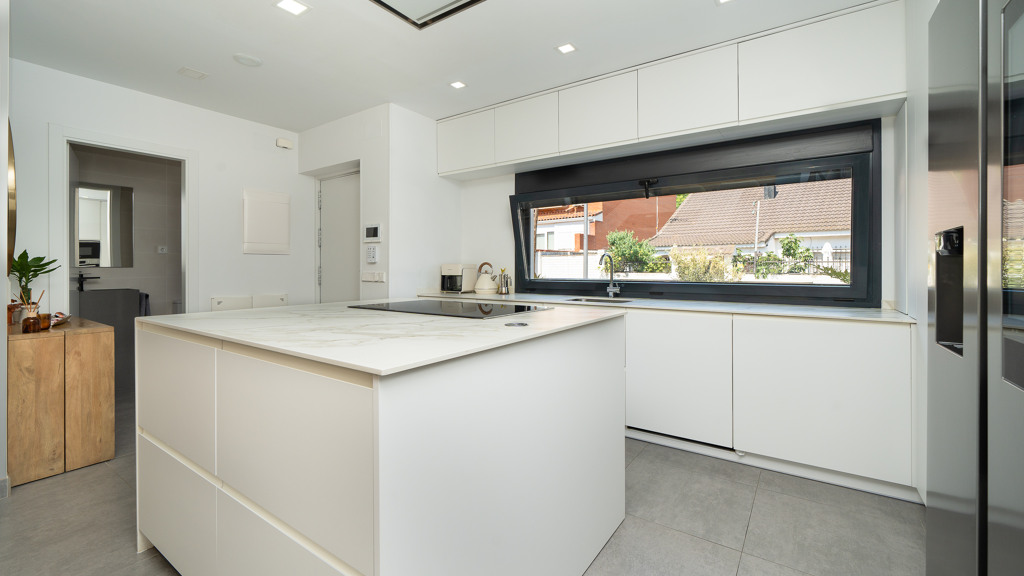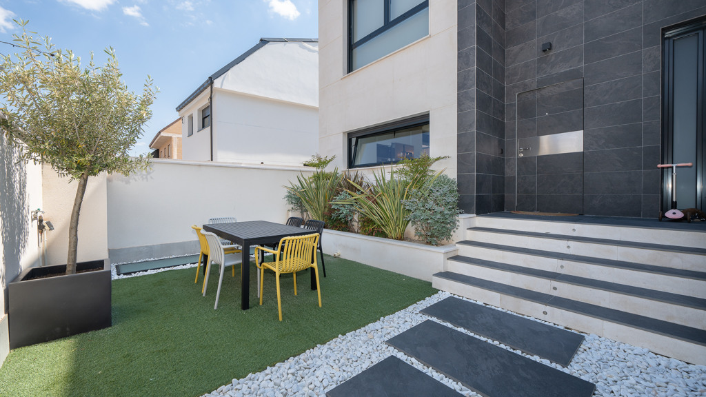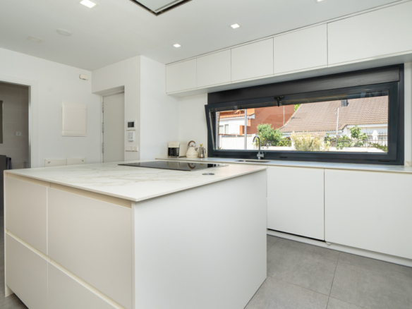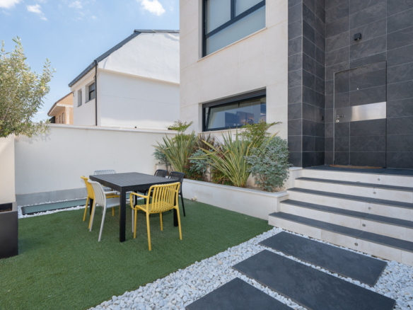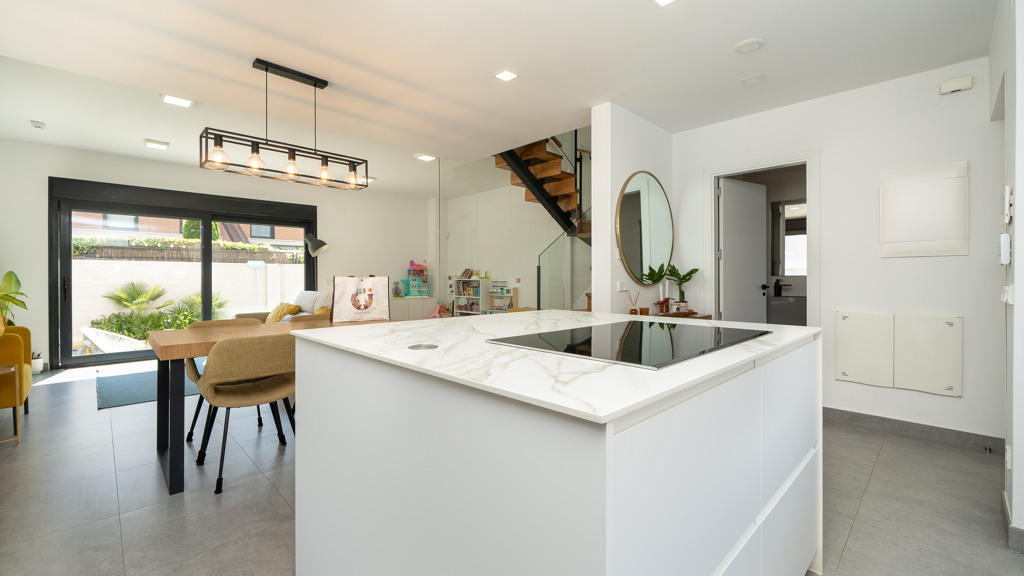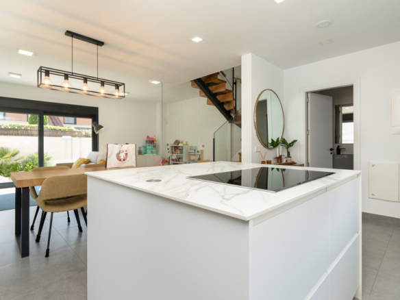 The house features top-quality finishes and a design that maximizes natural light and connection with the outdoors. The ground floor stands out for its impressive open-plan kitchen and living room, equipped with a central island that becomes the heart of the home. From here, there is direct access to the private garden—a perfect space to enjoy outdoor moments year-round. Additionally, the garden features an elegant chill-out area, swimming pool, and barbecue area, ideal for family gatherings and social events.