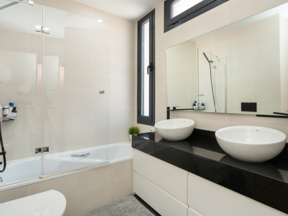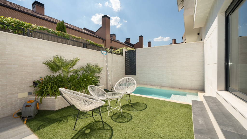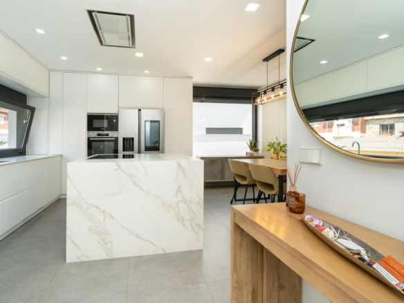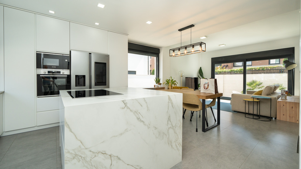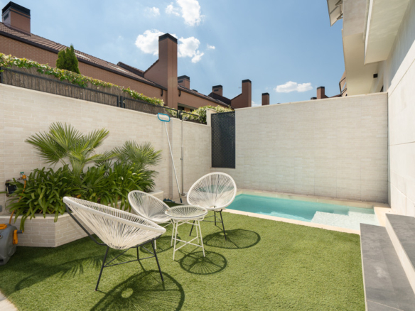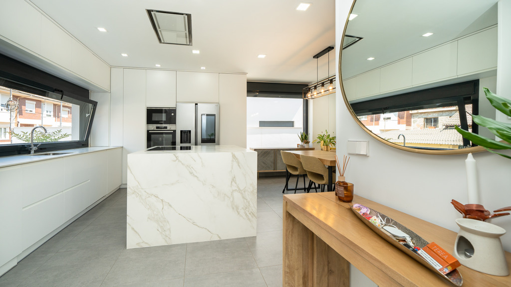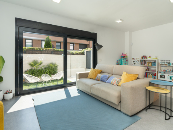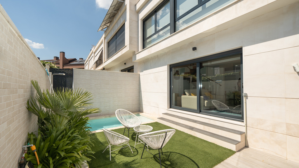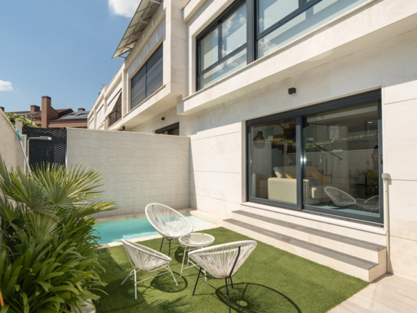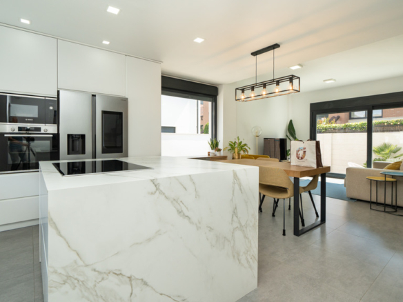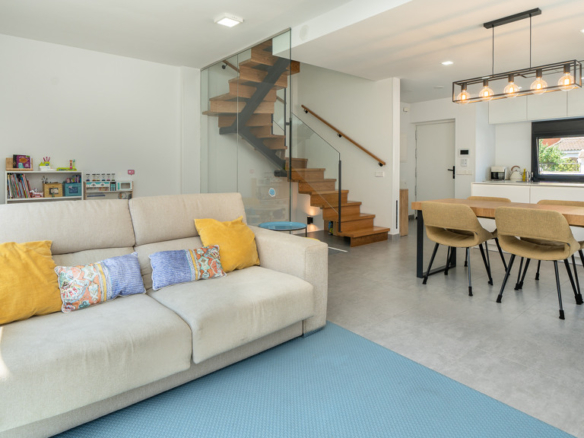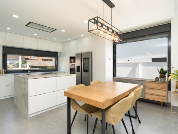 The house features top-quality finishes and a design that maximizes natural light and connection with the outdoors. The ground floor stands out for its impressive open-plan kitchen and living room, equipped with a central island that becomes the heart of the home. From here, there is direct access to the private garden—a perfect space to enjoy outdoor moments year-round. Additionally, the garden features an elegant chill-out area, swimming pool, and barbecue area, ideal for family gatherings and social events.